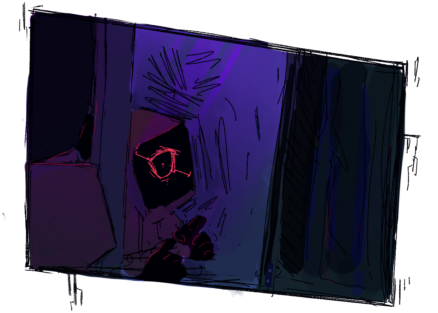 The murmuring from the other side of the door stops. Something Cooper hadn’t registered until it was gone, and the new depth of the silence choking the room makes him want to get up; walk around; leave; anything; but the eyes in the corner are telling him to stay. He doesn’t look away from the screen in his hands.