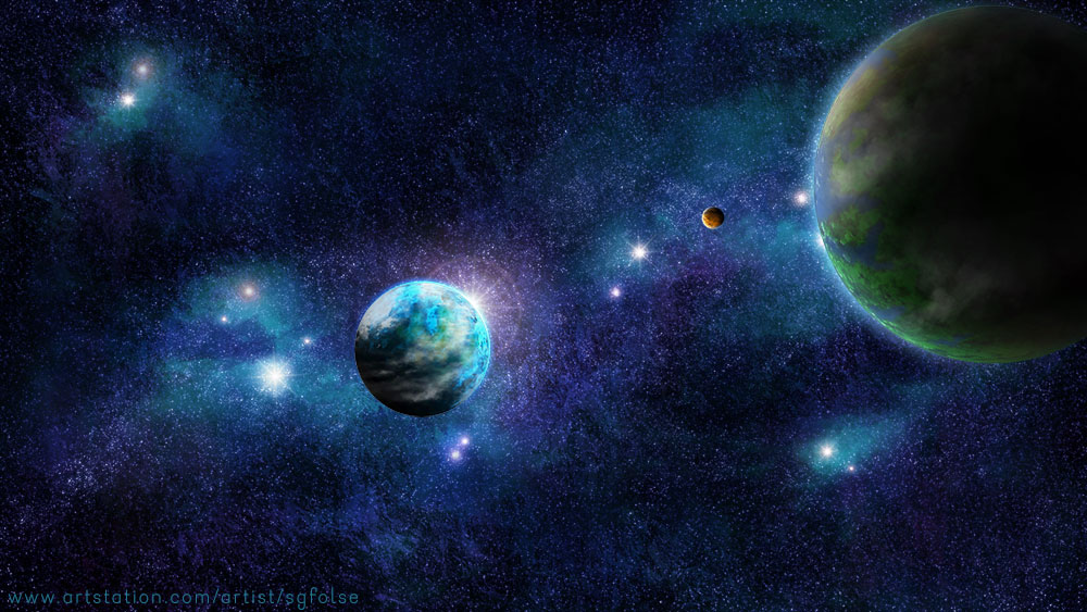 Your prompt was the perfect excuse to practice creating starfields and planets (and I forgot to post it to the collection until now).
