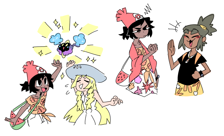 “Oh!” Lillie was the first to react, turning around and kneeling down before Moon, “Are you hurt? You almost- I'm so sorry you were just trying to help Nebby and- ohh Nebby you almost caused so much trouble!” Moon's grip on the Pokemon only relaxed as the long blonde haired girl's fingers brushed hers, reaching out to collect the tiny being.