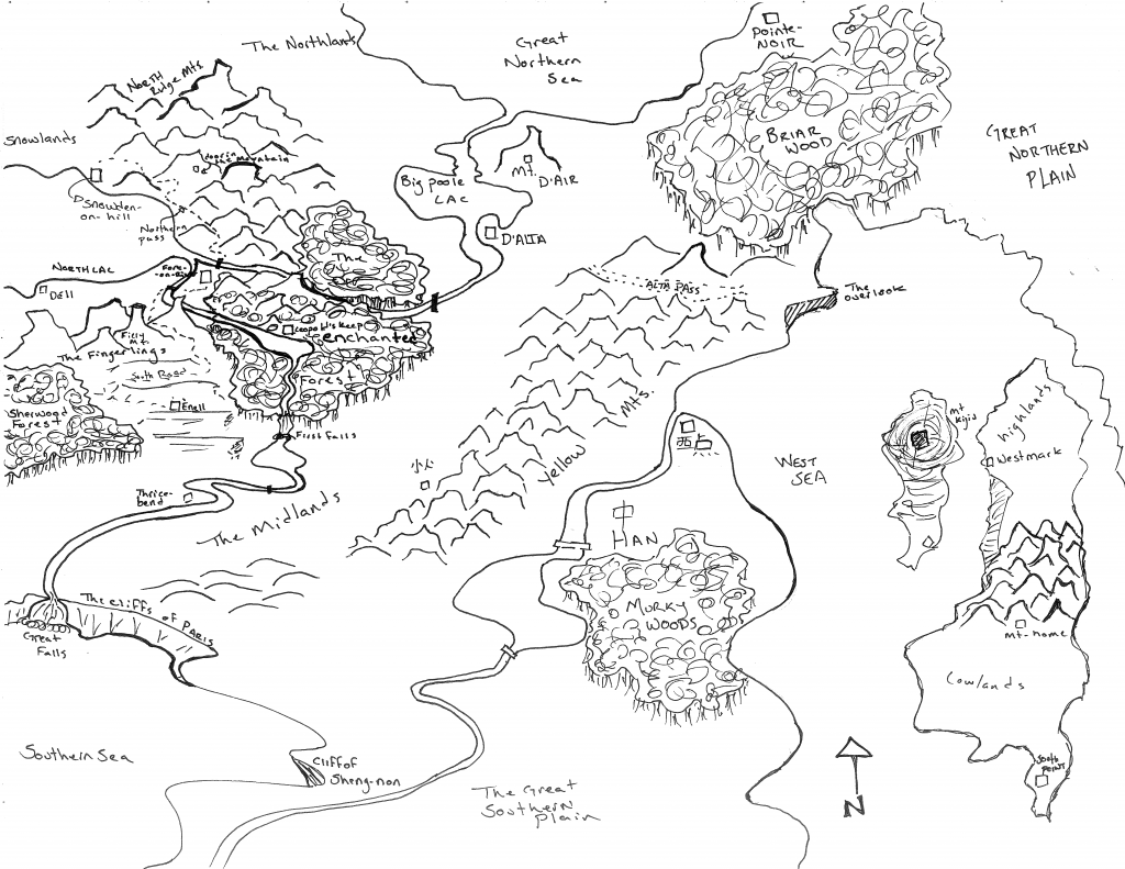 They were cutting south and east across the mountains from the Snowlands far to the north, headed to the lands of her childhood, the windswept, sunny planes far to the south. This had once been a mighty kingdom, the great northern expanse of The Northlands, it had been called. Now though, as time and cursed ruin had set in upon the lands, it was splintered. The Snowlands of the west and D’Alta of the east had created a schism, pulling away from the great keep at the center of the Enchanted Forest. They were their own countries now, three where there was once just one, and all three slowly falling into ruin.