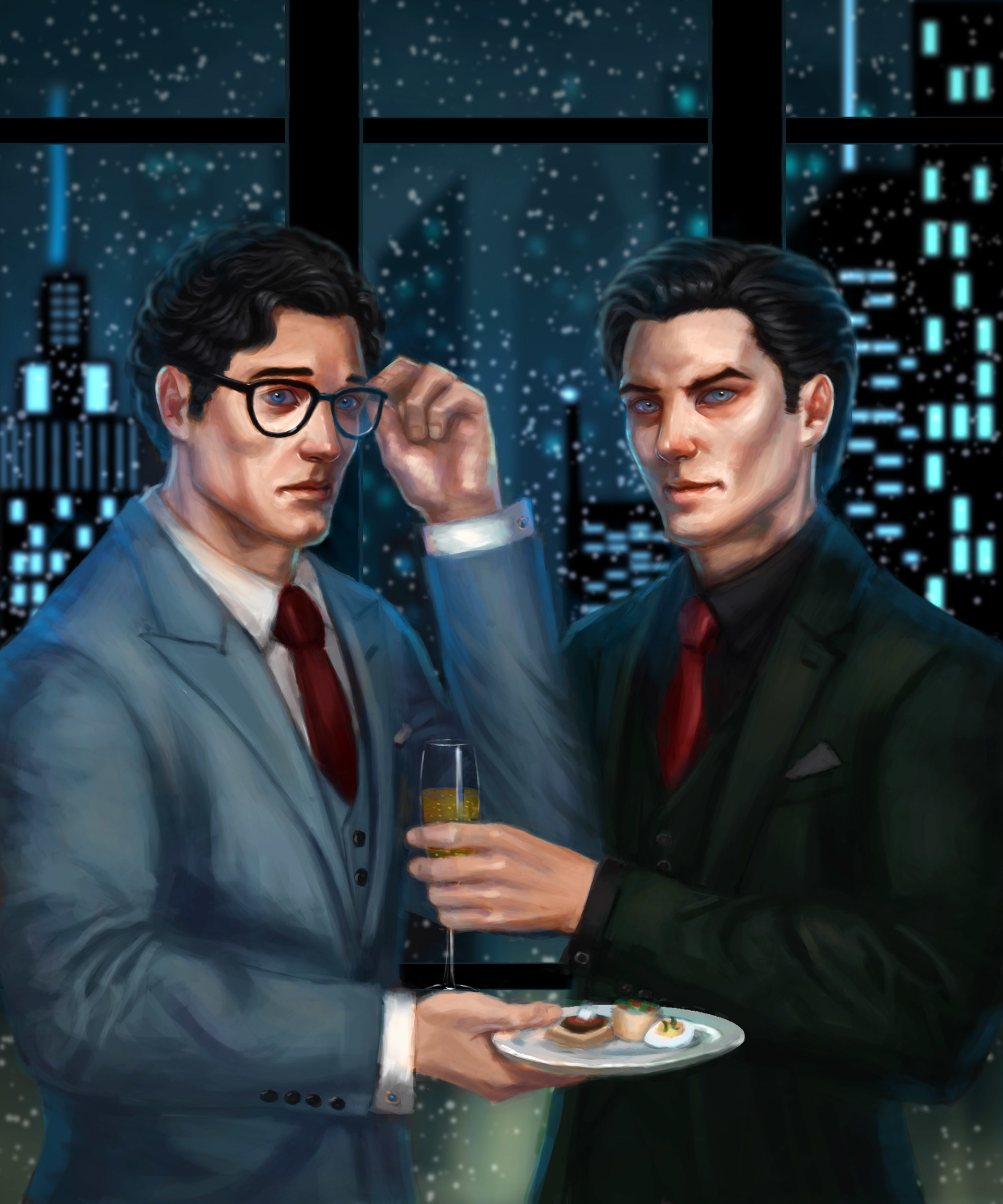 Second time doing fanart, first time for this fandom. Upon request by Nowrunalong, I quote "maybe like, they're at a party and they're dressed up in FANCY FORMALWEAR". Hope you like it.