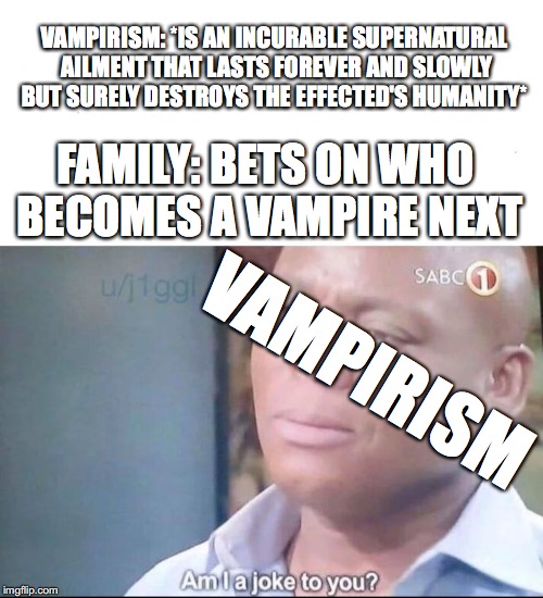 ButterflyLesbian: but vampires??? Don't??? Exist???? I'm pretty sure Great Grandpa Joseph just got a facelift and dyed his hair brown.