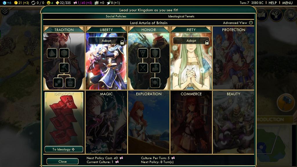 Perhaps it was the first village we encountered offering religious relics for Britain’s protection that spurred this. The second, beset by a barbarian camp right outside their borders, offered knowledge and cultural insight. With that I have managed to establish the start of a noble tradition to refine Britain’s society, and the first lessons in martial honor. My people will better record and learn from their past. While making some military discipline inherit to Camelot’s society will ease the task dispersing the hordes of savages. The barbarian camp will be destroyed in short order. I am no stranger to this need to kill in order to protect my people, and with these villages protect others. Although it pains me to continue feeding these ‘Hero King’ visions my people build in the process. Perhaps someday I can reign in this foolishness of seeing me as a goddess into something constructive. Either way for now I must attend assuming a direct lead again. The scouts are almost ready to set out and I believe my guidance necessary for expanding our housing arrangements as Camelot grows.