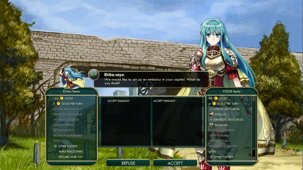 Eirika: Renais will only receive living ambassadors. I’ve had quite enough of the undead from my homeland thank you very much.