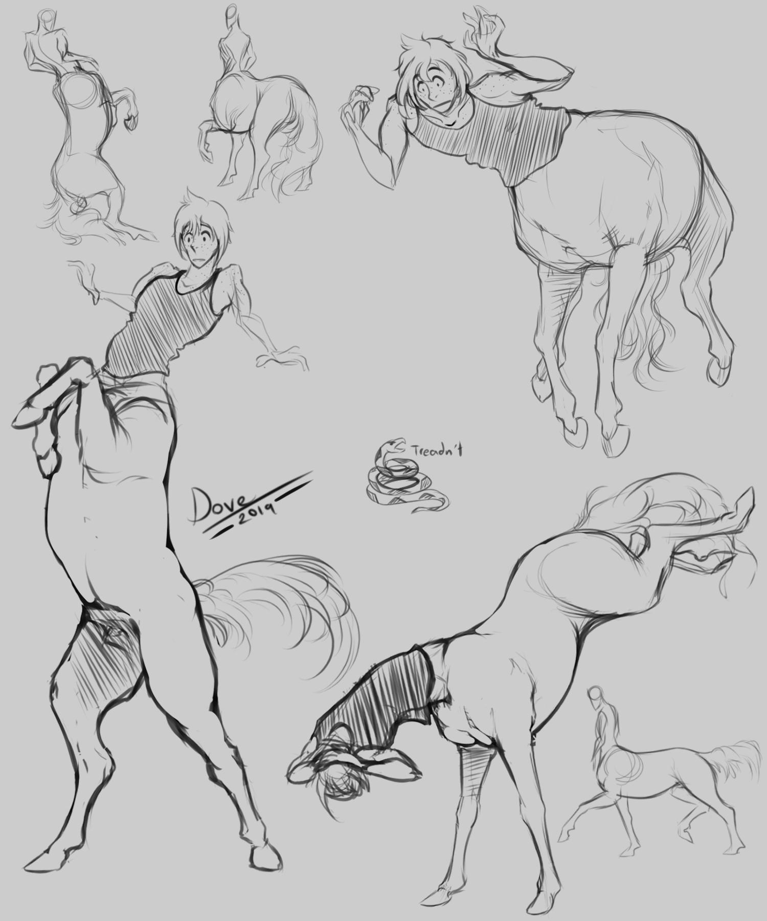 Playing around with that weird ol anatomy too, I find I tend to make centaurs a lot more flexible than they're often shown in media, or indeed like actual horse.