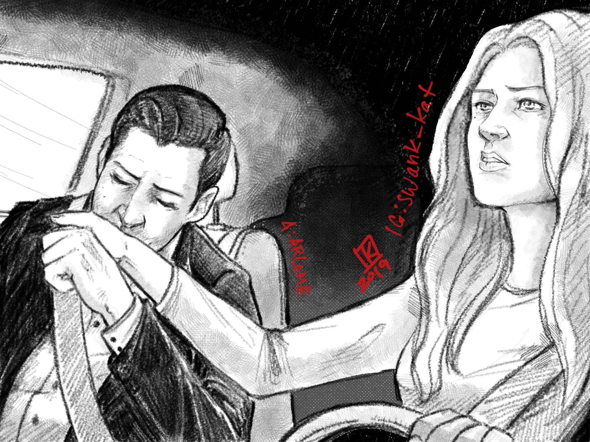Chloe squeezes his fingers, and stares at the road; her eyes are clouding a little, and she blinks and nods.