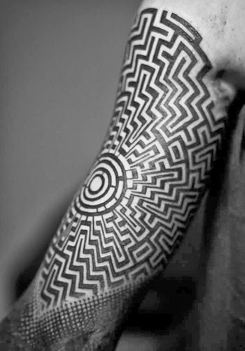 He already had his left arm completely covered in a series of intricate patterns . His chest was partially covered with lots of small designs. As well as a wolf on his left hip and a large maze spanning his right side and curling round his back. Nico's other noticeable tattoo was a Greek warrior at the top right of his back near his shoulder.