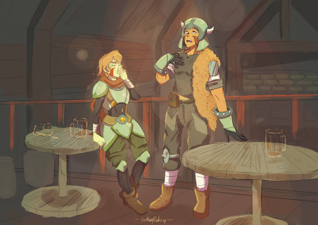 After the quest, they went to the tavern, with the rest of the group sleeping in the lean-to building which the owner shared for just a couple of silver coins, Pike and Meklavar decided to loosen up. Just after a couple of golden drinks.