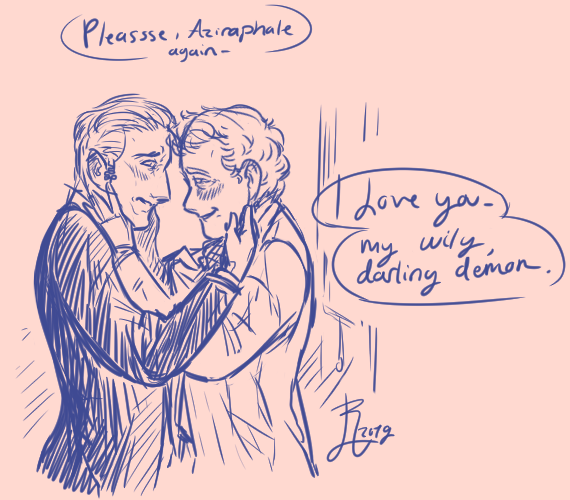Then again, Aziraphale can’t sense any love, at all. Nothing coming from Crowley in the slightest. He tries not to think too much into it.