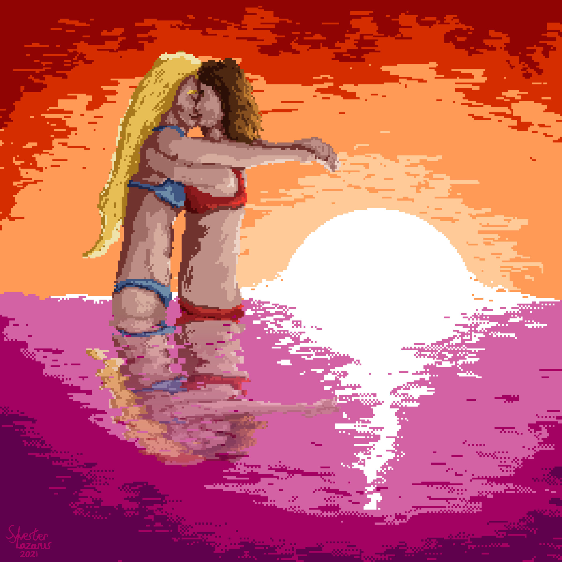 She sat up to gently embrace the girl again, who she'd been sharing her bed with for a while.