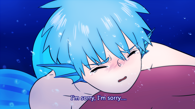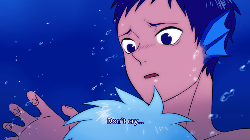 "Hey, you're the kid from last time," Hara noticed, swimming around the two mermen in a circle. "Oh, I get it. That tanned shrimp is the one that got you out of there. I knew that blood smelled familiar."