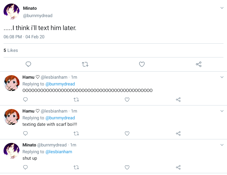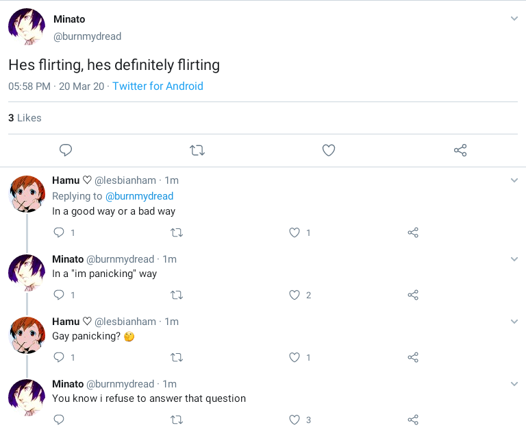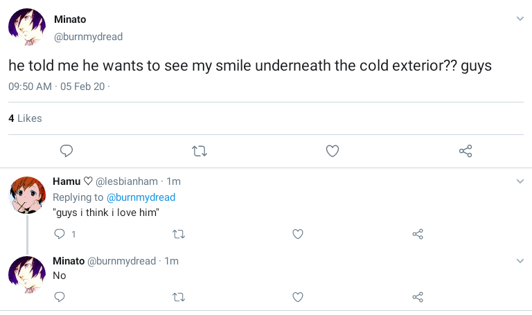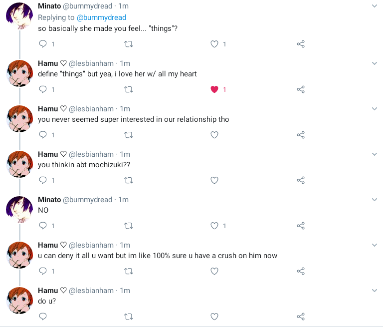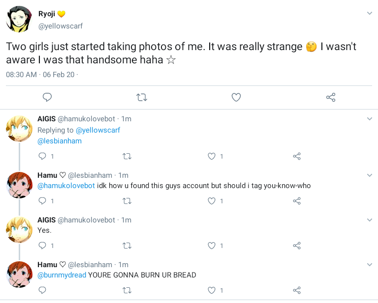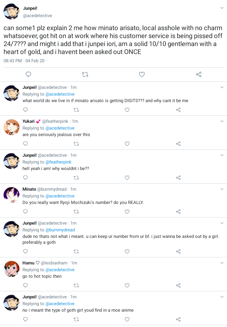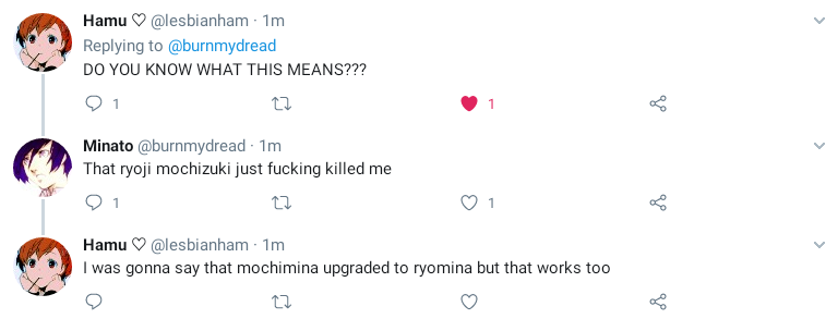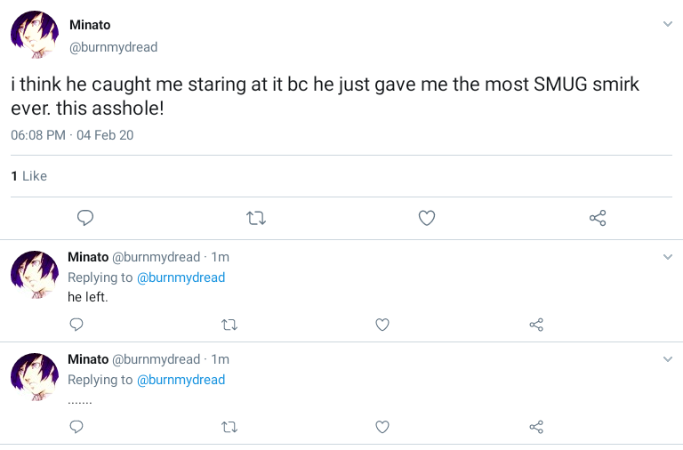 - Ryoji doesn't post much on priv, and mainly made the account to pine over Minato (without Minato seeing it).