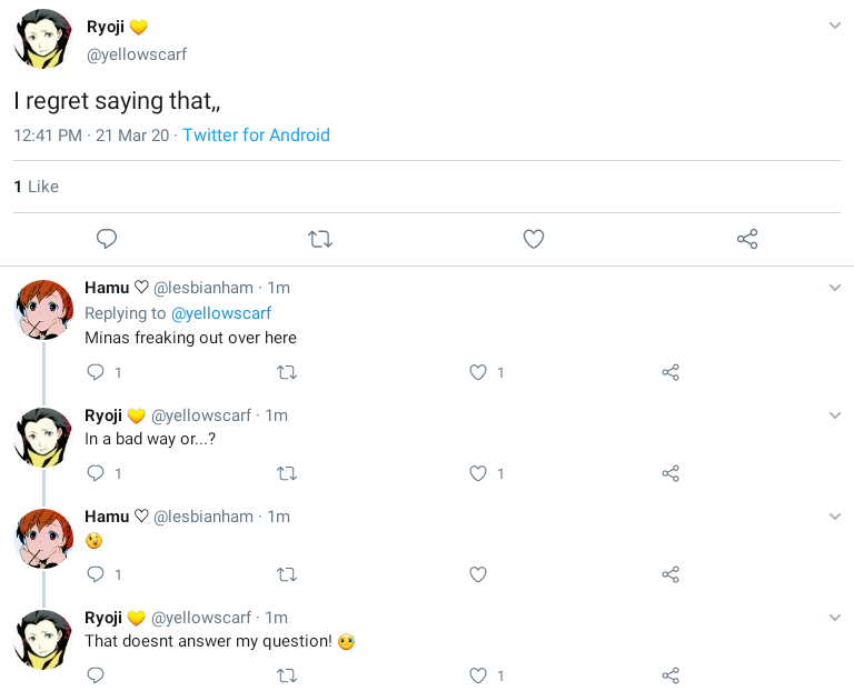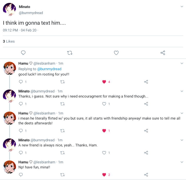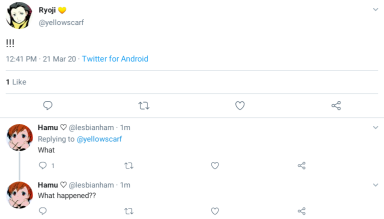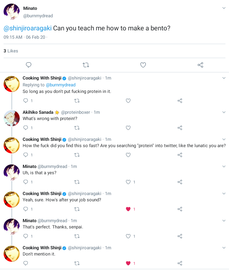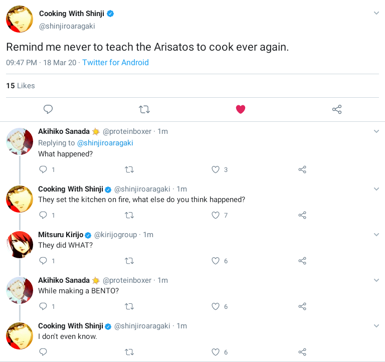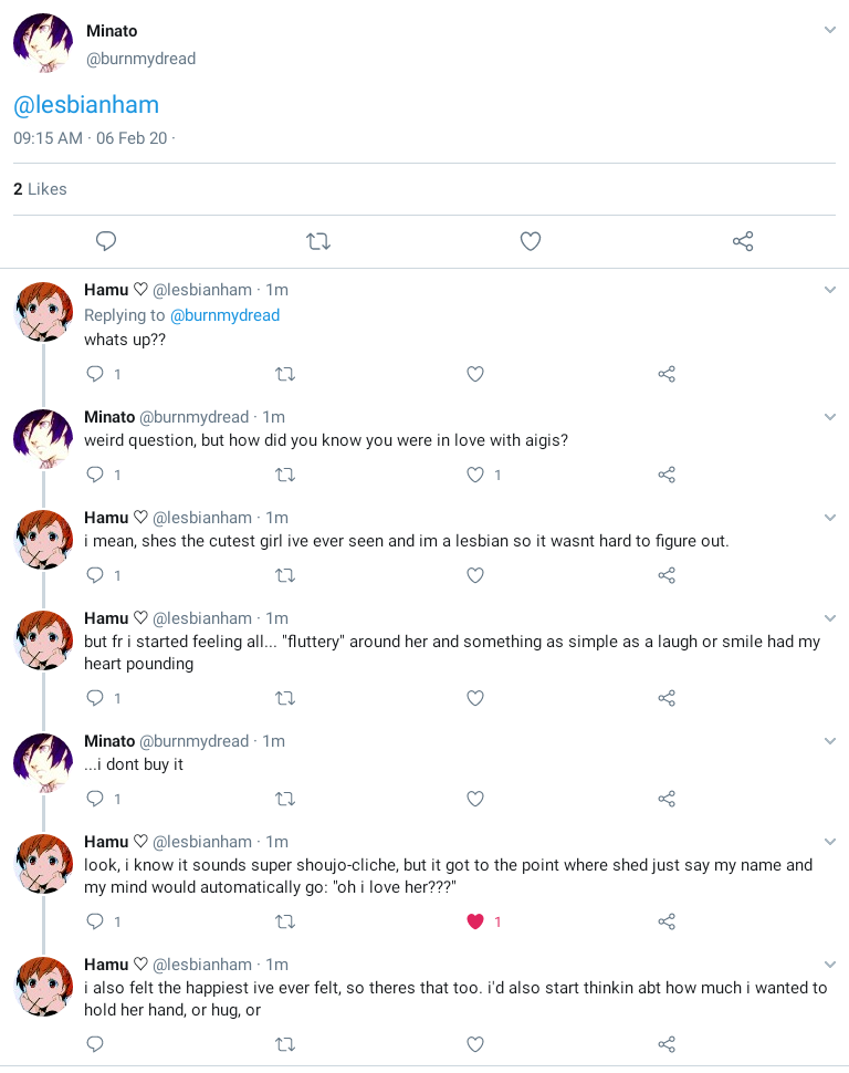 Uhh first off, i'd like to apologize for the extremely long hiatus! i originally had several chapters ready to post last year but the app i was using got removed from my device (and the play store) so that was fun. i ended up losing motivation after that, which was why i stopped updating the fic entirely. (also got into new fandoms but thats not important) anyway i logged onto a03 for the first time in a year and saw many comments, kudos, and recs from everyone who was reading the p3 socmed au! thank you so much!! your support really means so much to me and i was incredibly motivated by the kind words i received, laughter from people who enjoyed it, and comments waiting for the next chapter. this is quite honestly the most self-indulgent thing i've ever made so seeing that it had become so loved was incredibly surprising and very touching! most of you have probably left/or unsubcribed (and rightfully so, i left for an entire year-) but if you haven't... thank you very much for waiting this long ❤