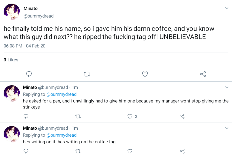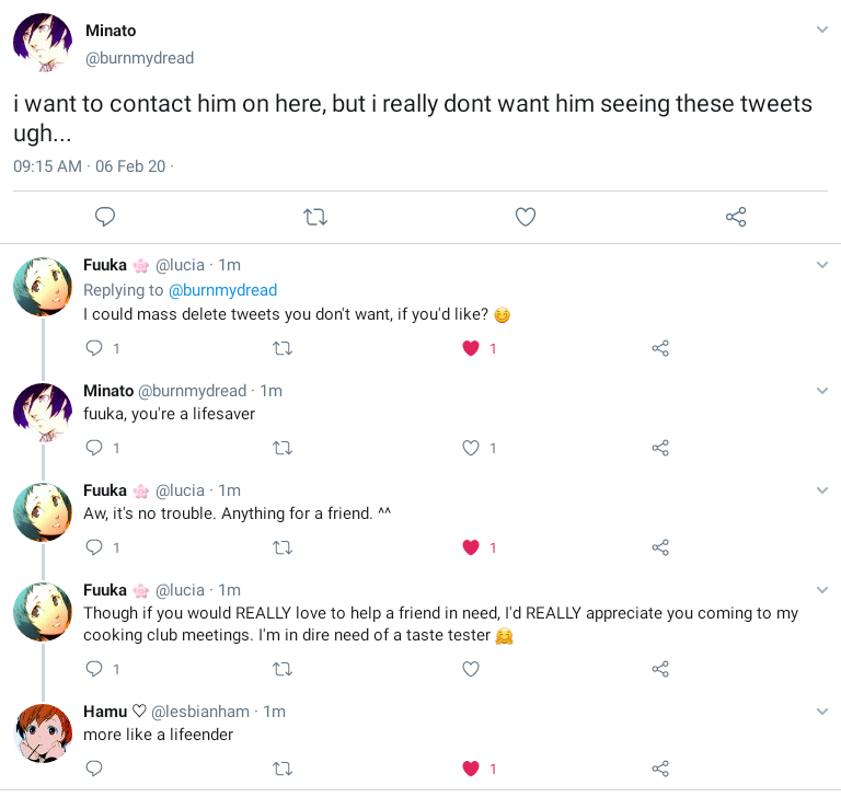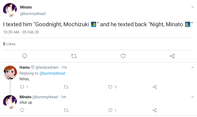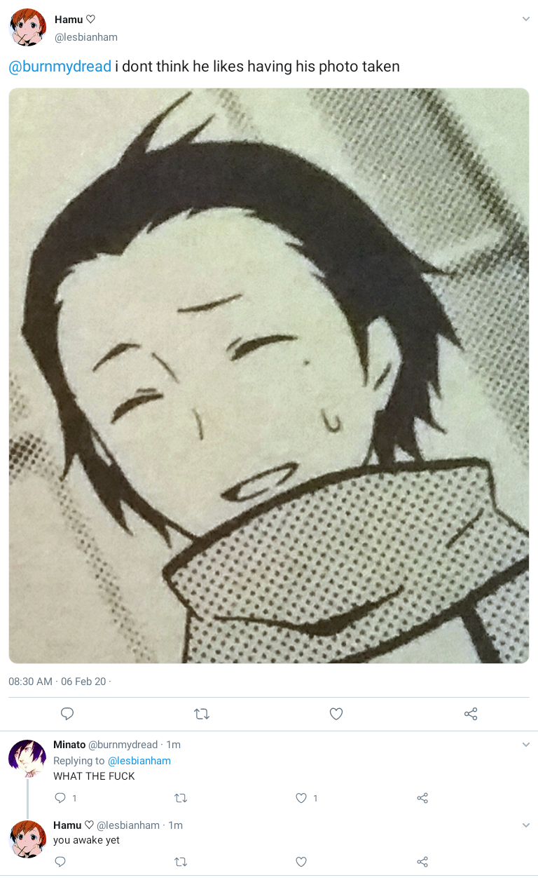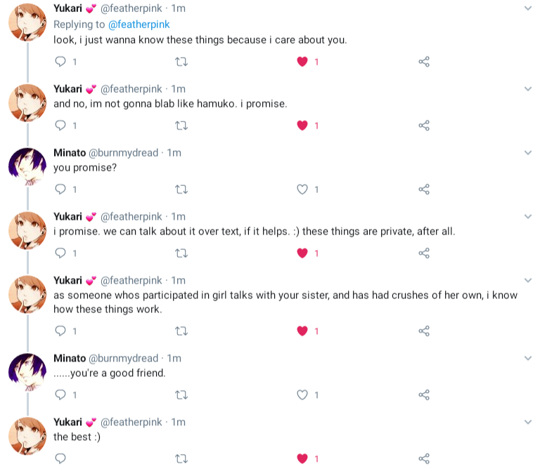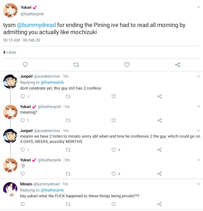 - Minato has had his priv account for a while and uses it to post things he doesn't want anyone to see, so Hamuko and the dorm don't know about it. Because it's more personal to him, he puts his private thoughts here.