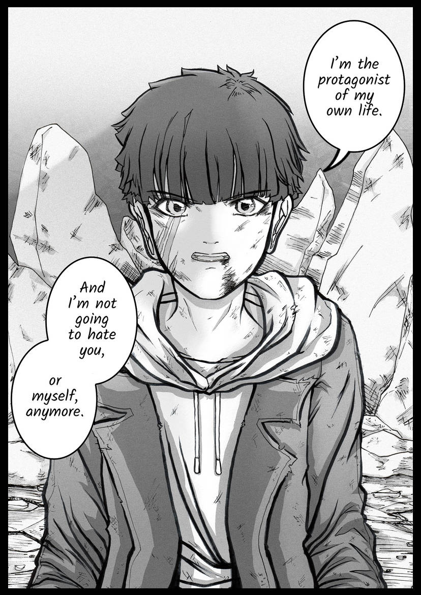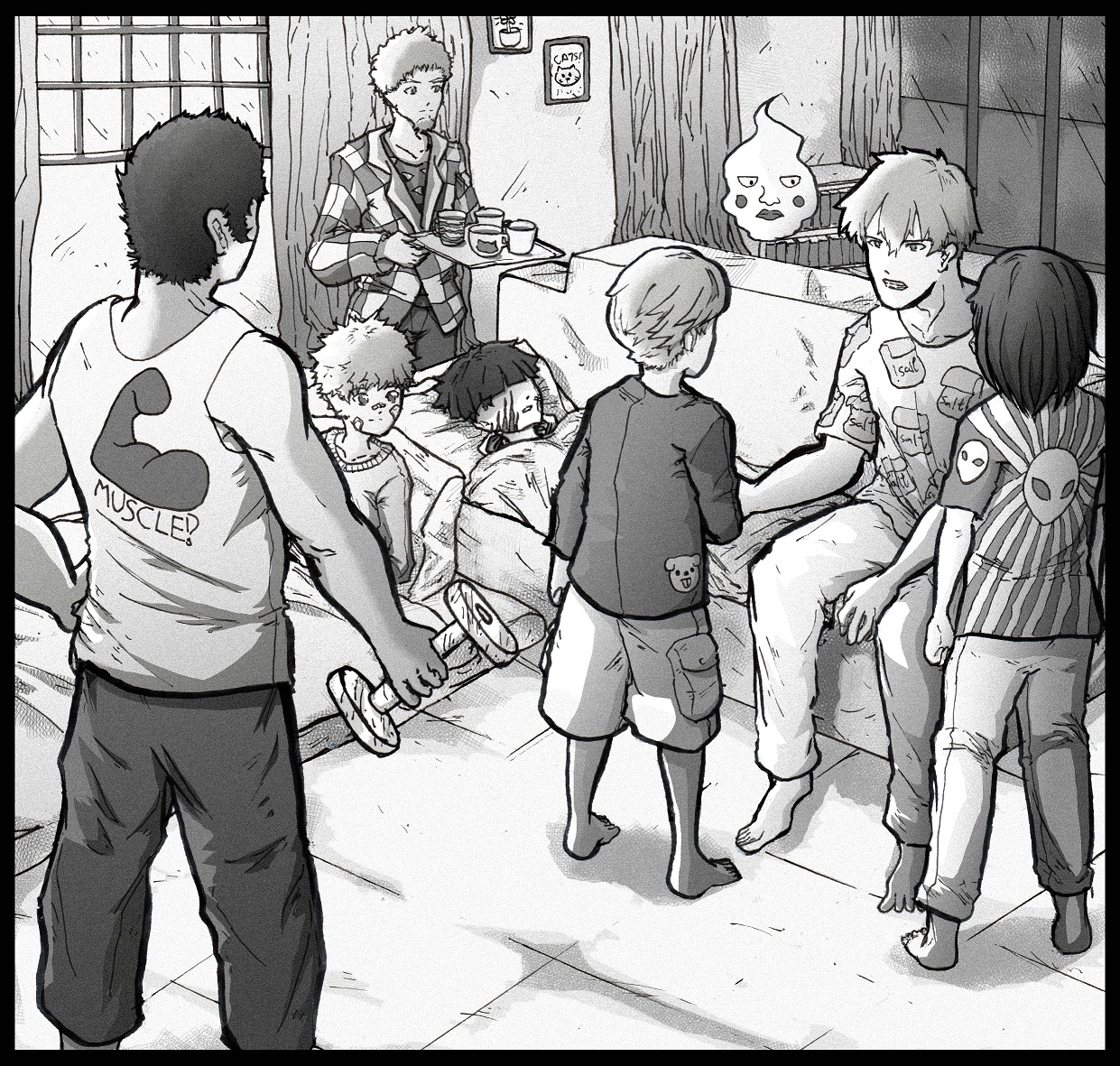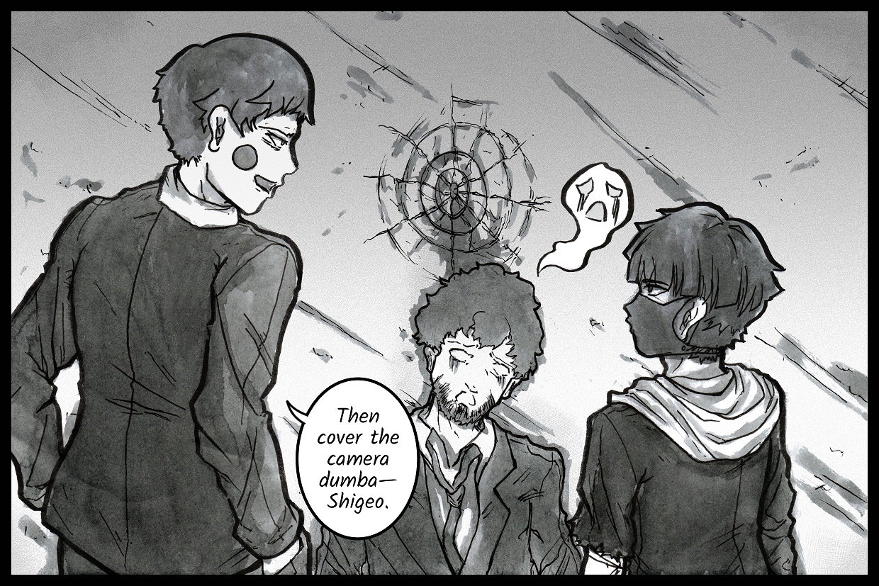 There’s something devastated in Reigen’s eyes. Mob steps past the memorial. “And this was the genkan. There was a staircase here that led up to my and Ritsu’s rooms. And over there’s the door to the living room—”