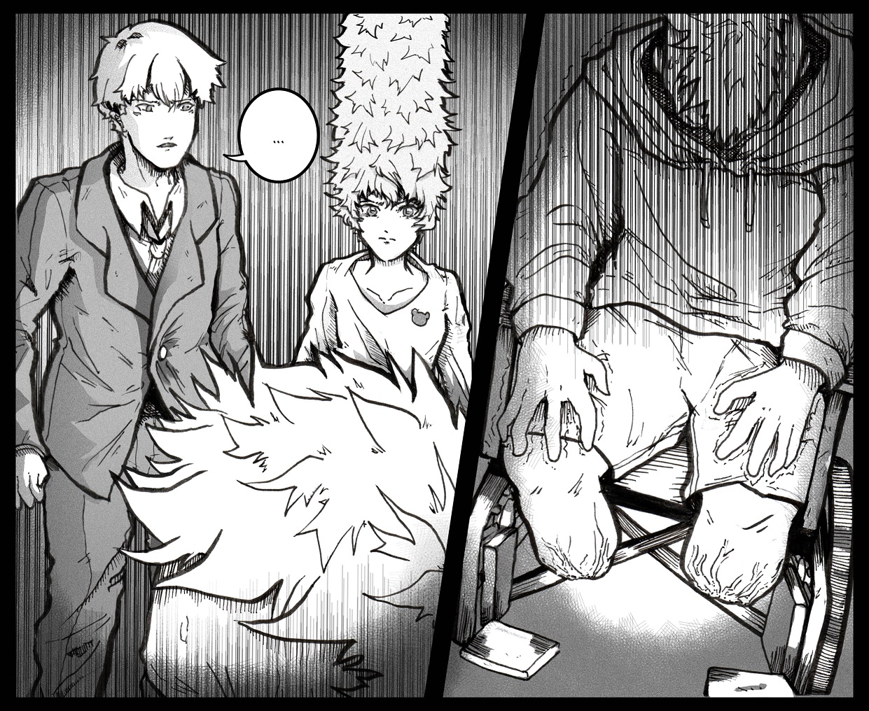 In twenty something years, Reigen’s heard enough stories about ‘Black T Poison’ to fill a lifetime of nightmares. It always involves murder, and some form of ‘telekinesis’ and maybe two or three dead kittens for extra flavour. Doesn’t help that Poison’s story has just the right amount of shōnen-esque tropes to run wild on the internet. An active fourteen year-old serial killer? With psychic powers? Hell, he even has the whole ‘accidently killed his parents’ tragic backstory.