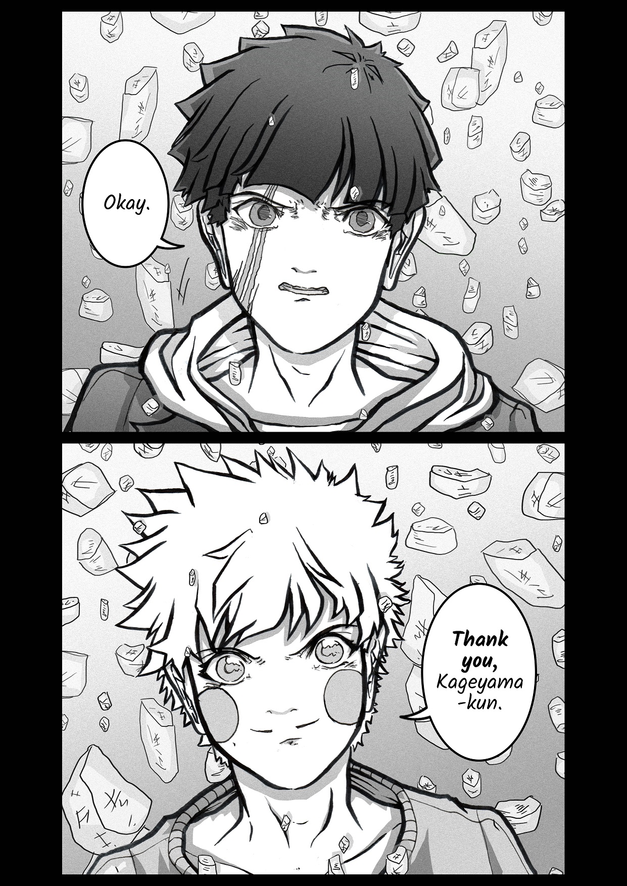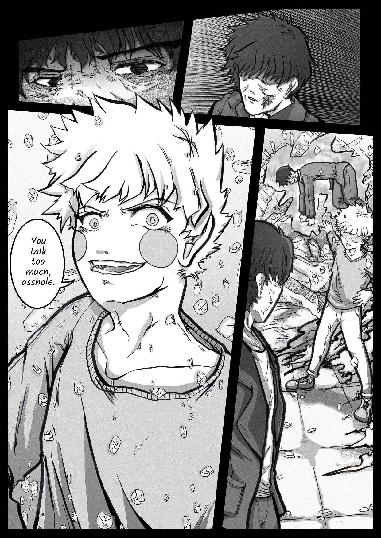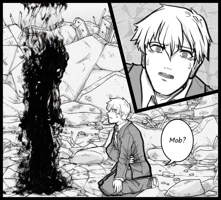 “Reigen-san.” Poison says a little more insistently. Reigen looked at him, then at the giant crater in the ground. And the two alive guys on top of that.