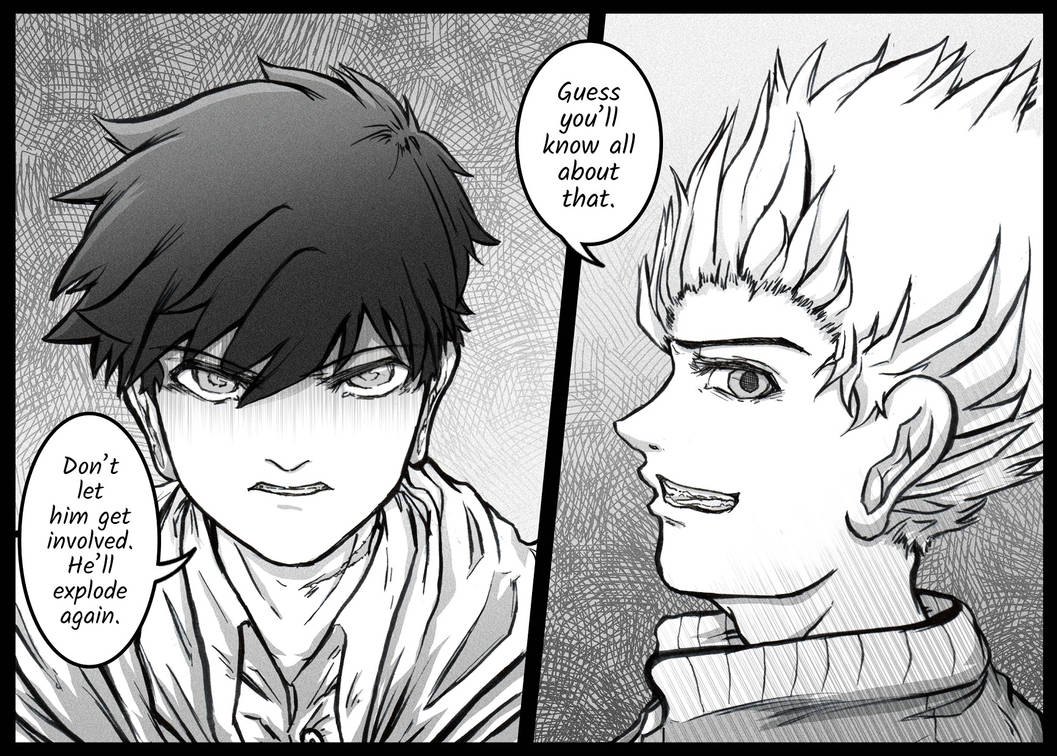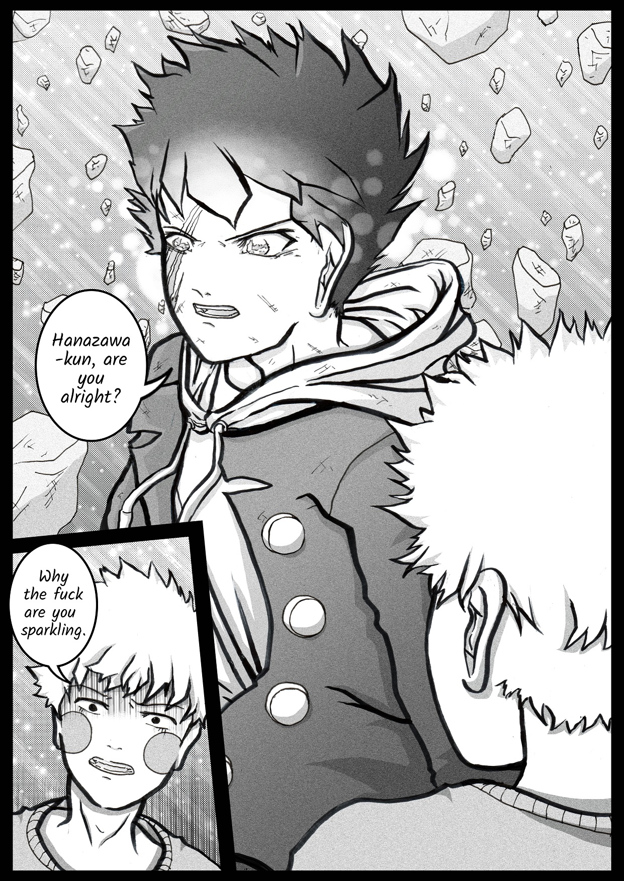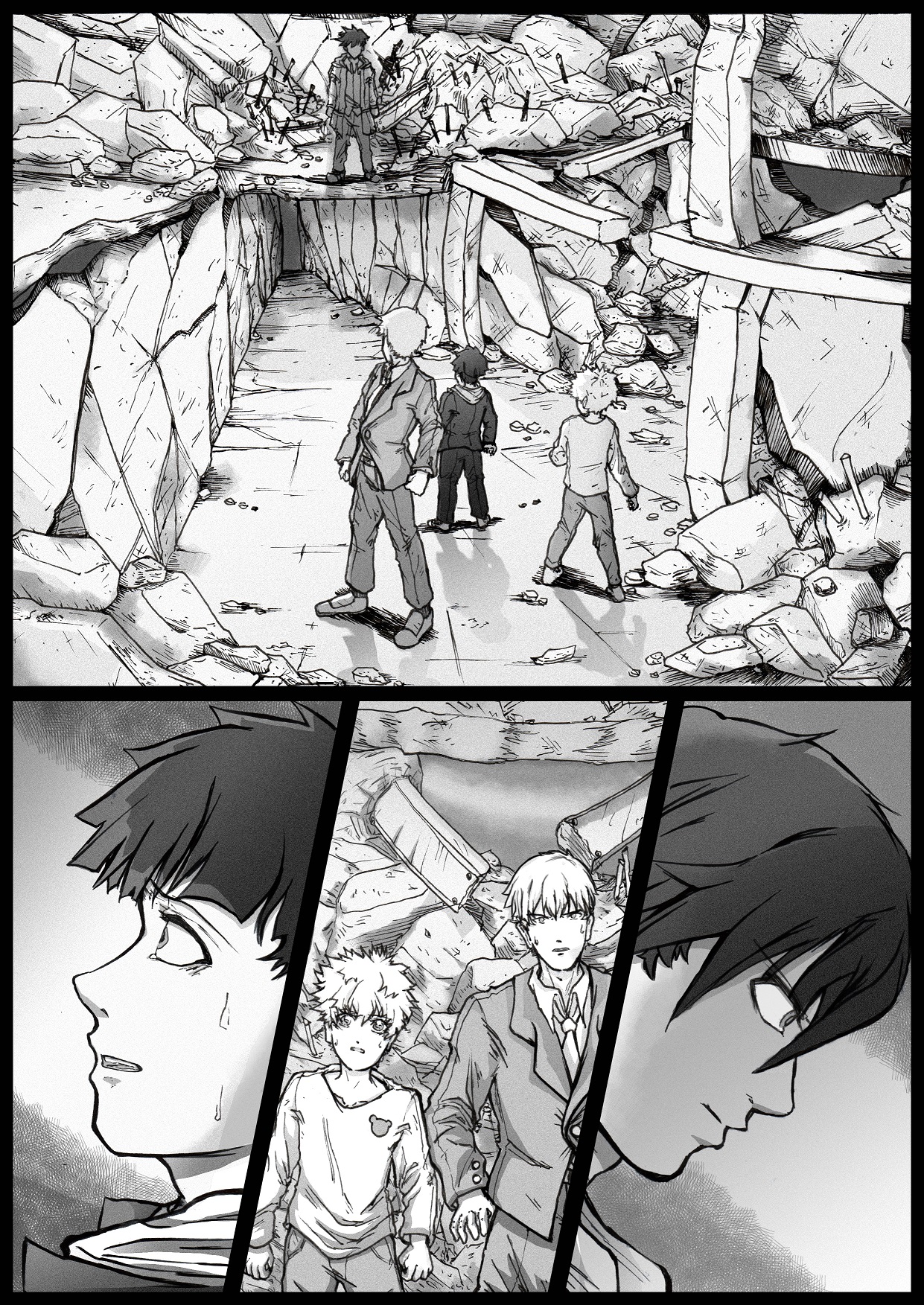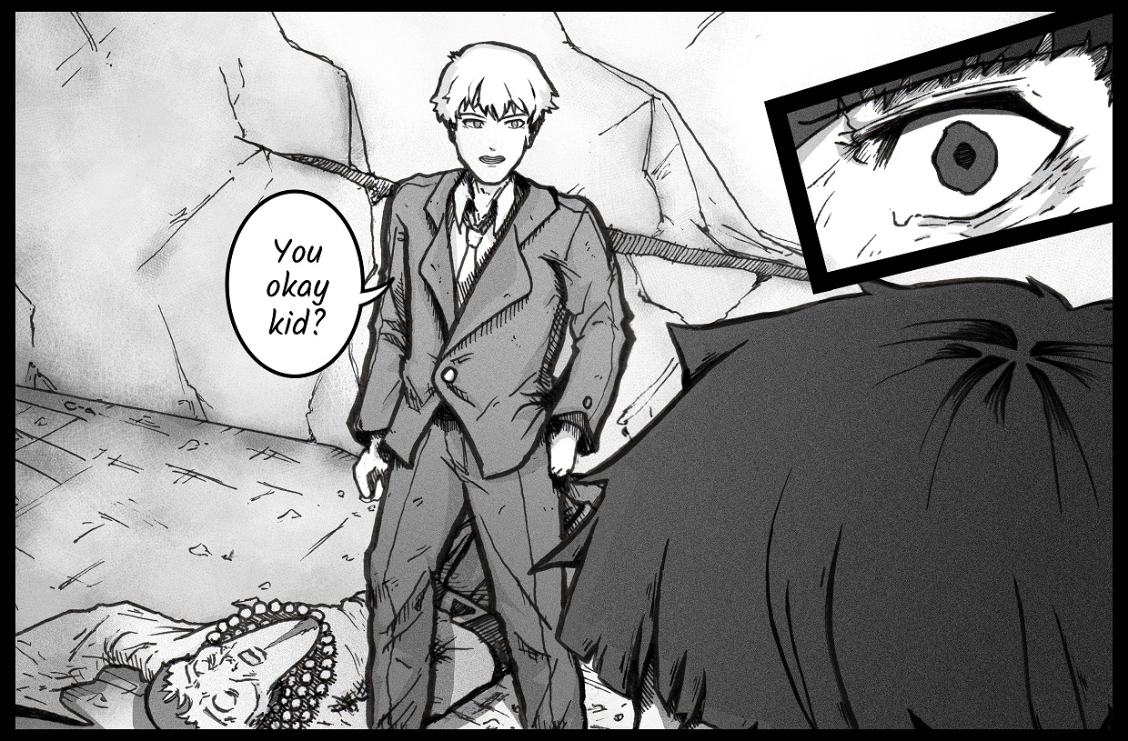 “Reigen-san.” Poison says a little more insistently. Reigen looked at him, then at the giant crater in the ground. And the two alive guys on top of that.
