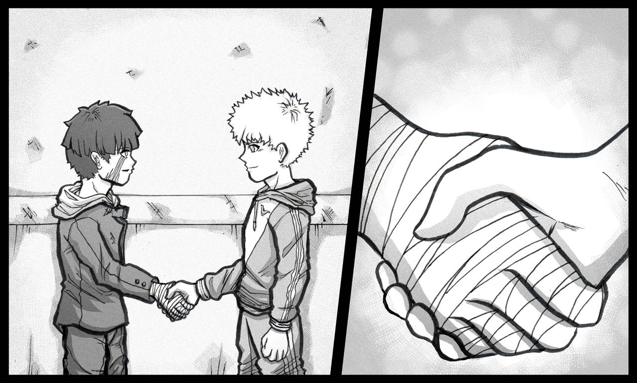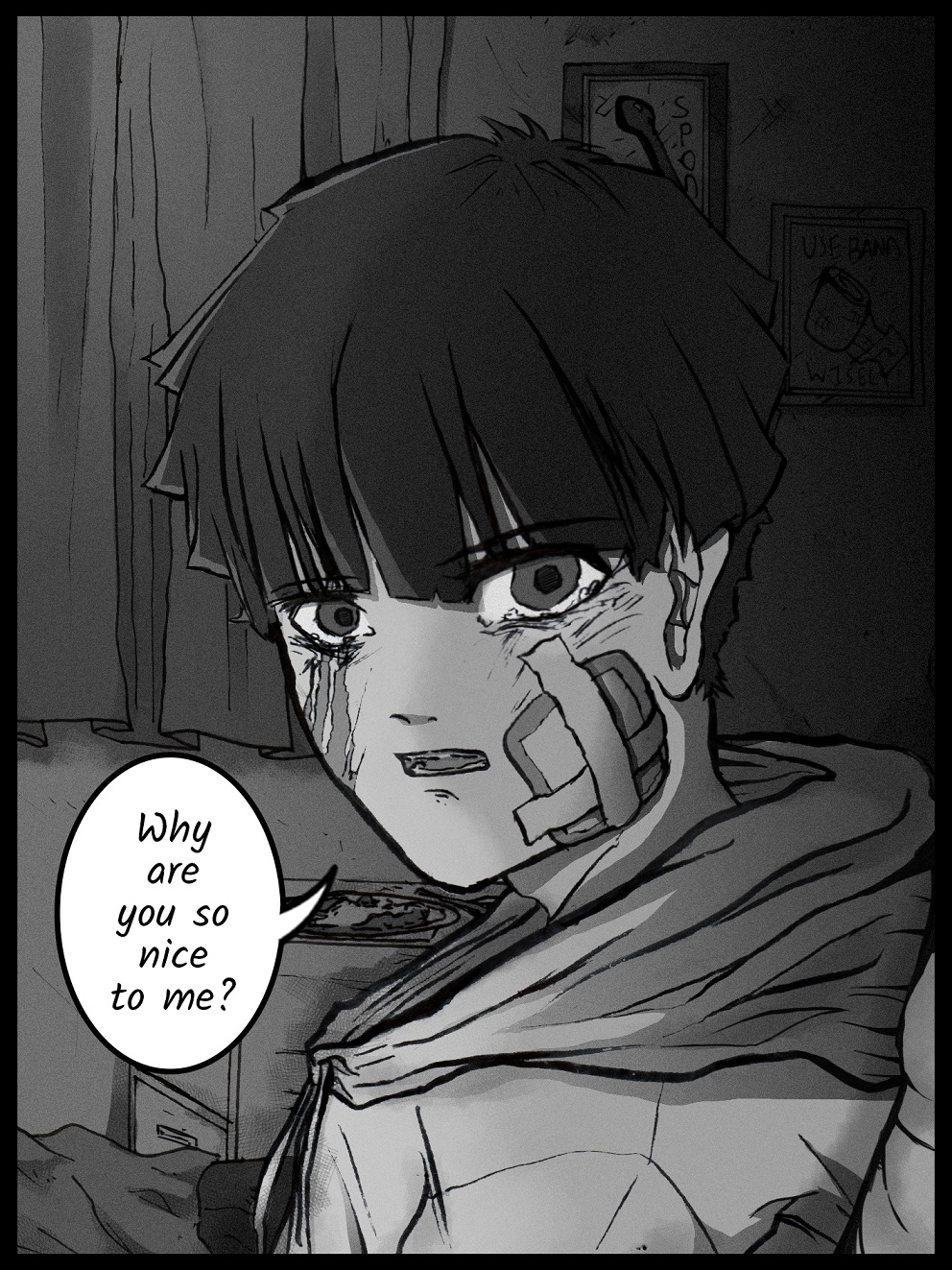 -Mob's visiting a therapist (who's related to someone he rescued), but the hand thing was something Mob suggested (Reigen made sure he was really okay before they tried it) and isn't how treatment is usually done. Please don't do this to anyone who may be triggered, okay?^^"'