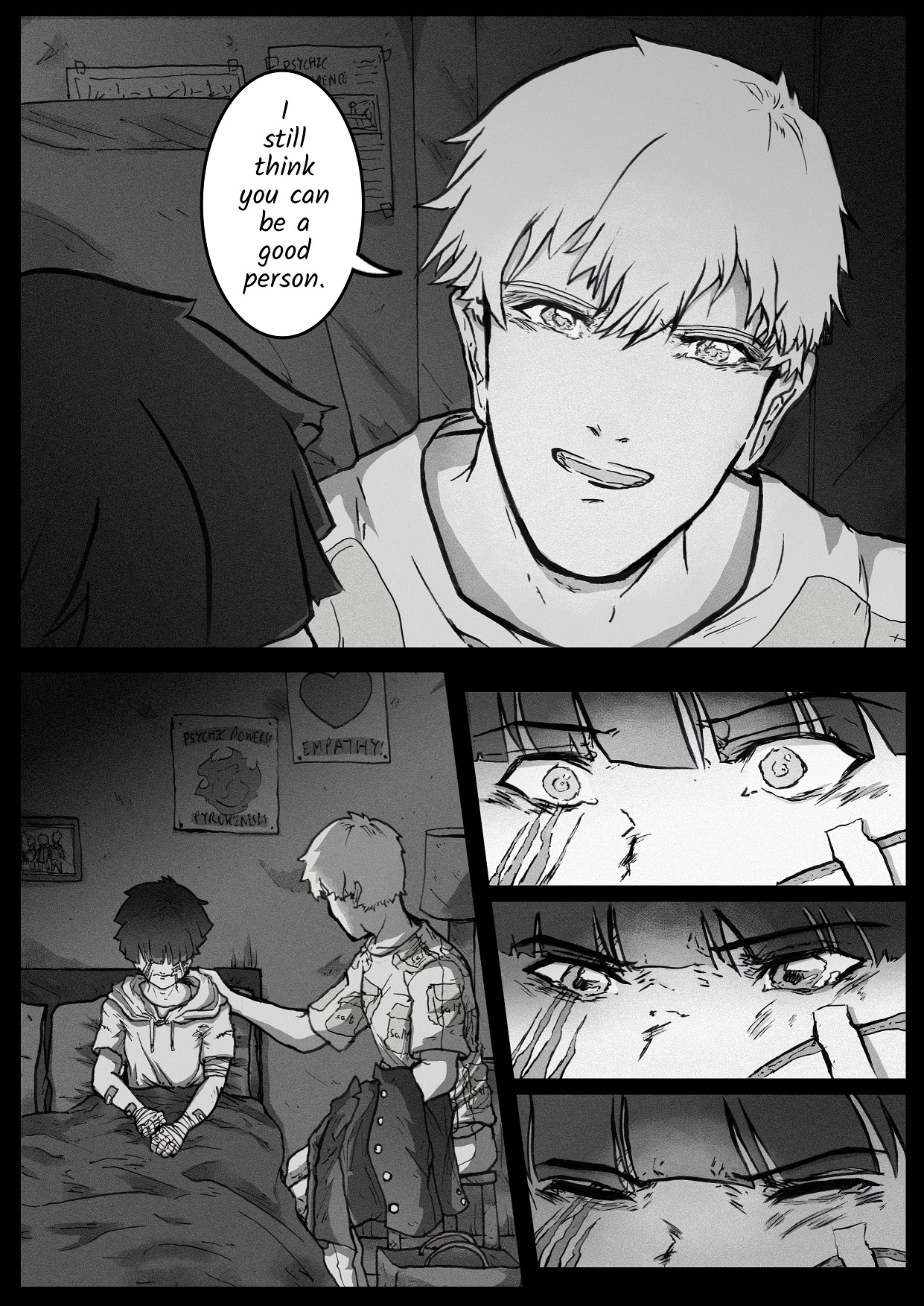 -Ritsu and Mob do reunite and reconcile although it takes a very long time, but they get thereI was thinking of doing a sequel but with how chp 16 came out it felt like it wrapped up nicely enough that I didn't need one^^"' Thinking of writing some post-StCR oneshots instead, like Mob's reunion with Ritsu or Mob meeting Reigen's parents or a really in-the-future fic where Mob's firemen colleagues learn who he used to be or something. Kinda wanna explore the backstory too, so I'll probably add a chapter or two to Dossier, currently thinking of writing an interview transcript between 5 year old Ritsu and a government agent. Will probably take a break from writing for now, hoping to work on plotting my own webcomic or drawing more, will probably come back to edit this too tho^w^