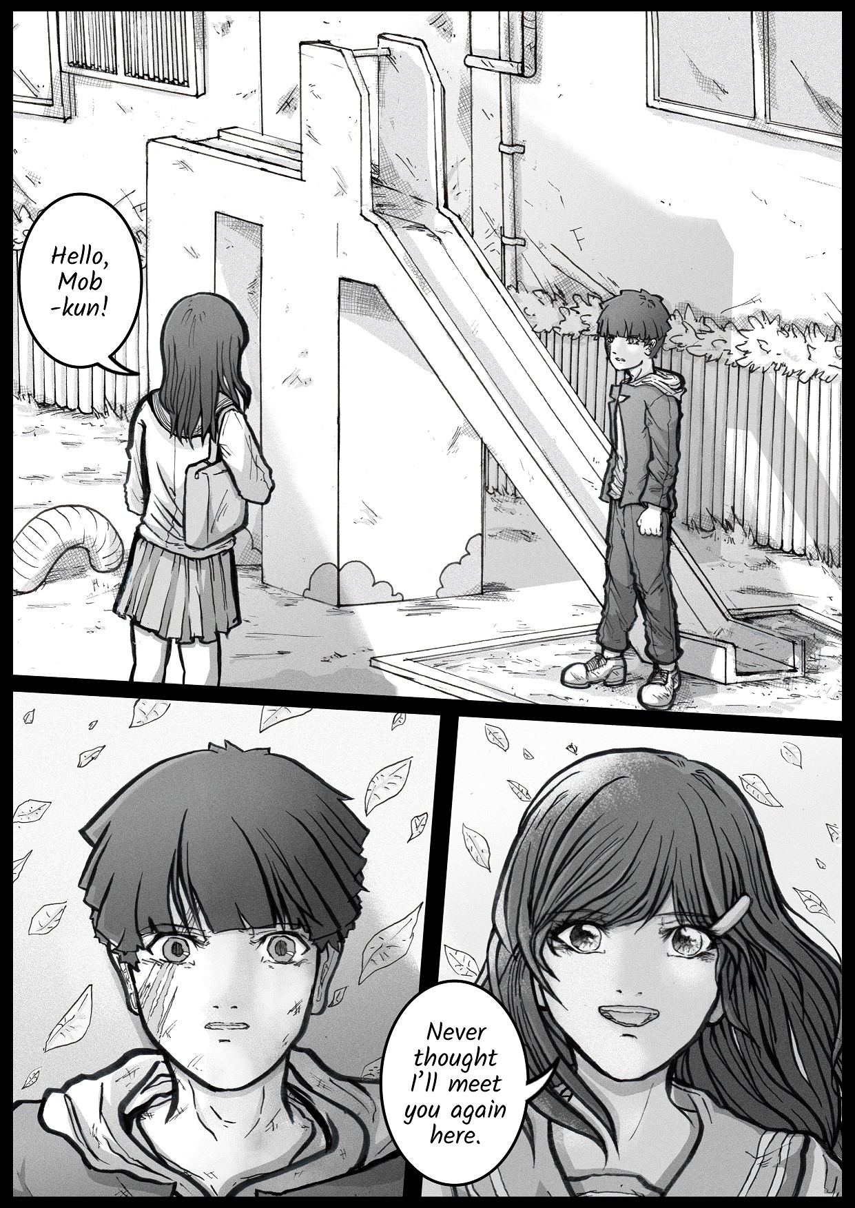 “Reigen Arataka!” Shit, why’d he go and tell him his real name? Now he could track him down—scratch that why did he go into this abandoned complex again?