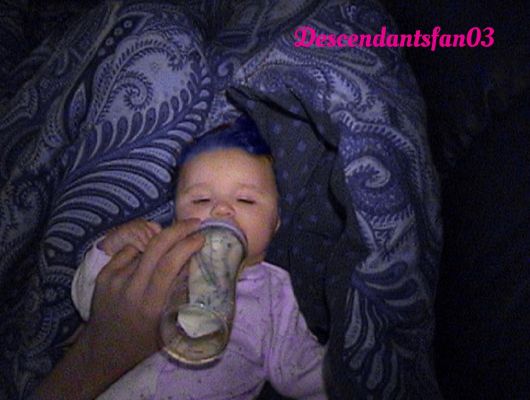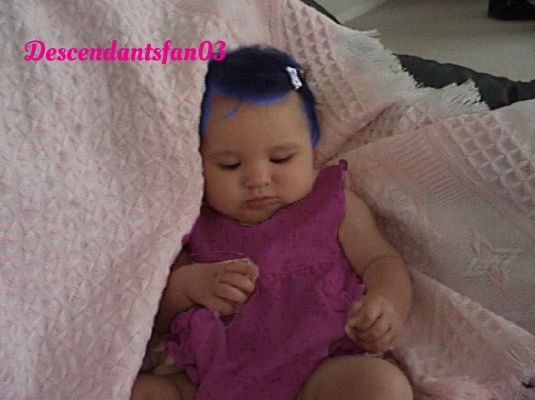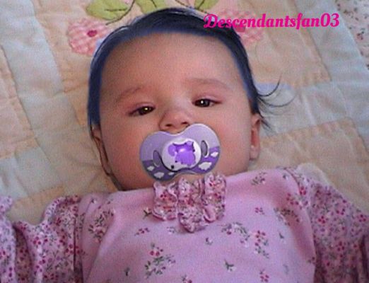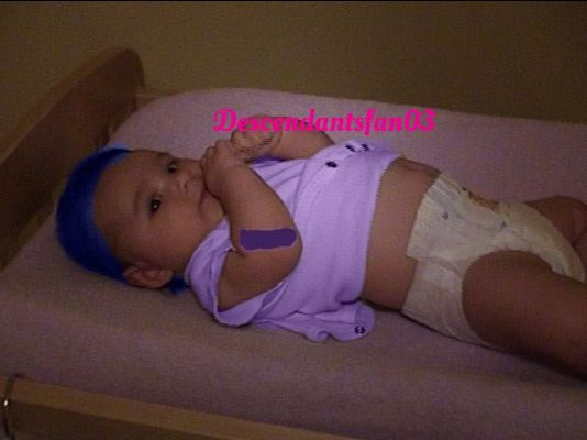 He took a good look at her and he noticed some things about her. She was now a blue haired baby and her once green eyes were now a brown color. The more he looked at her the more he was starting to see a resemblance to Evie the daughter of the Evil Queen.