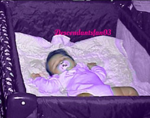 Evie had gotten back to her dorm very quickly and began to call Carlos and Jay on her phone while bouncing a bit trying to calm Mal down after she had woken up and began to cry. Mal was now wearing an old purple baby onesie and a diaper that she managed to find buried deep in her old isle bag that she forgot she even had. Carlos picked up the phone right away to her relief. “Hey what’s up?” Carlos asked her through the phone. “You and Jay need to come to our dorm. Mal’s glamour is no longer on and I really need your help,” she told the boy with urgency in her voice. “Wait, Really? Okay I told Jay we’re on our way now,” he told the young mother as he hung up the phone.