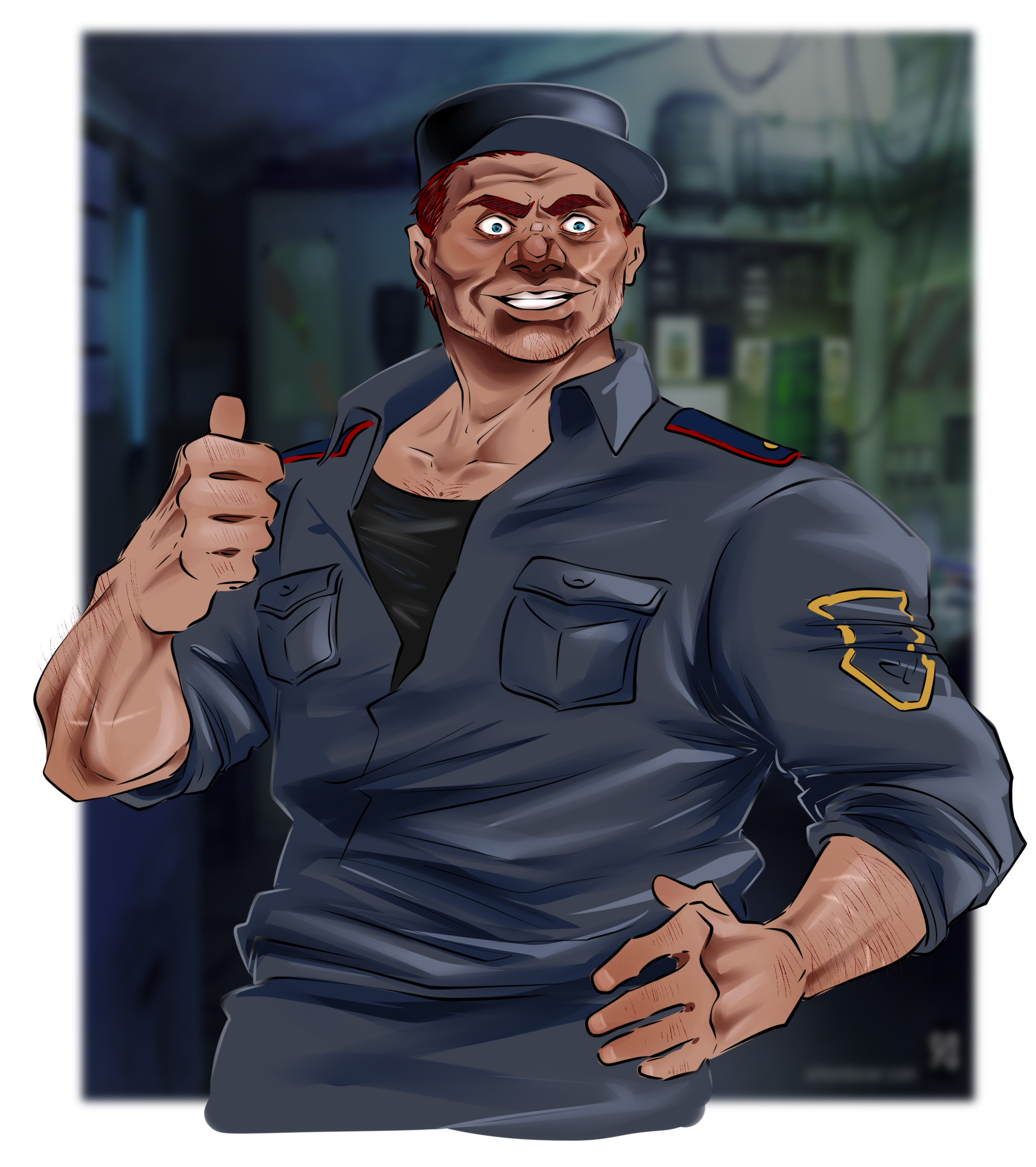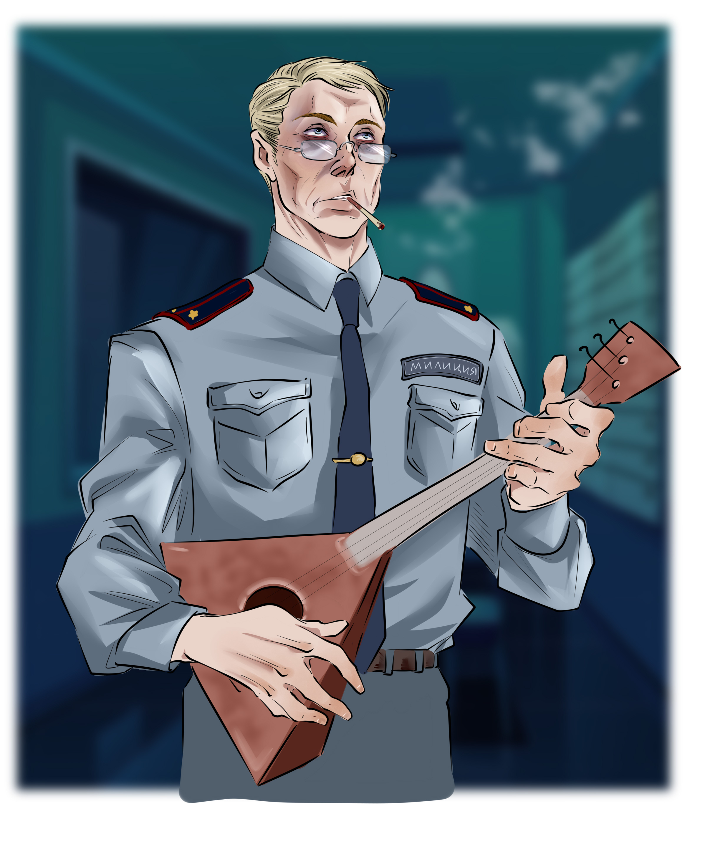Когда-то служил со Шкиперенко, а потом что-то пошло не так. Теперь иногда приходит побуянить и поспать в КПЗ. Мог бы вести свое кулинарное шоу на первом канале.