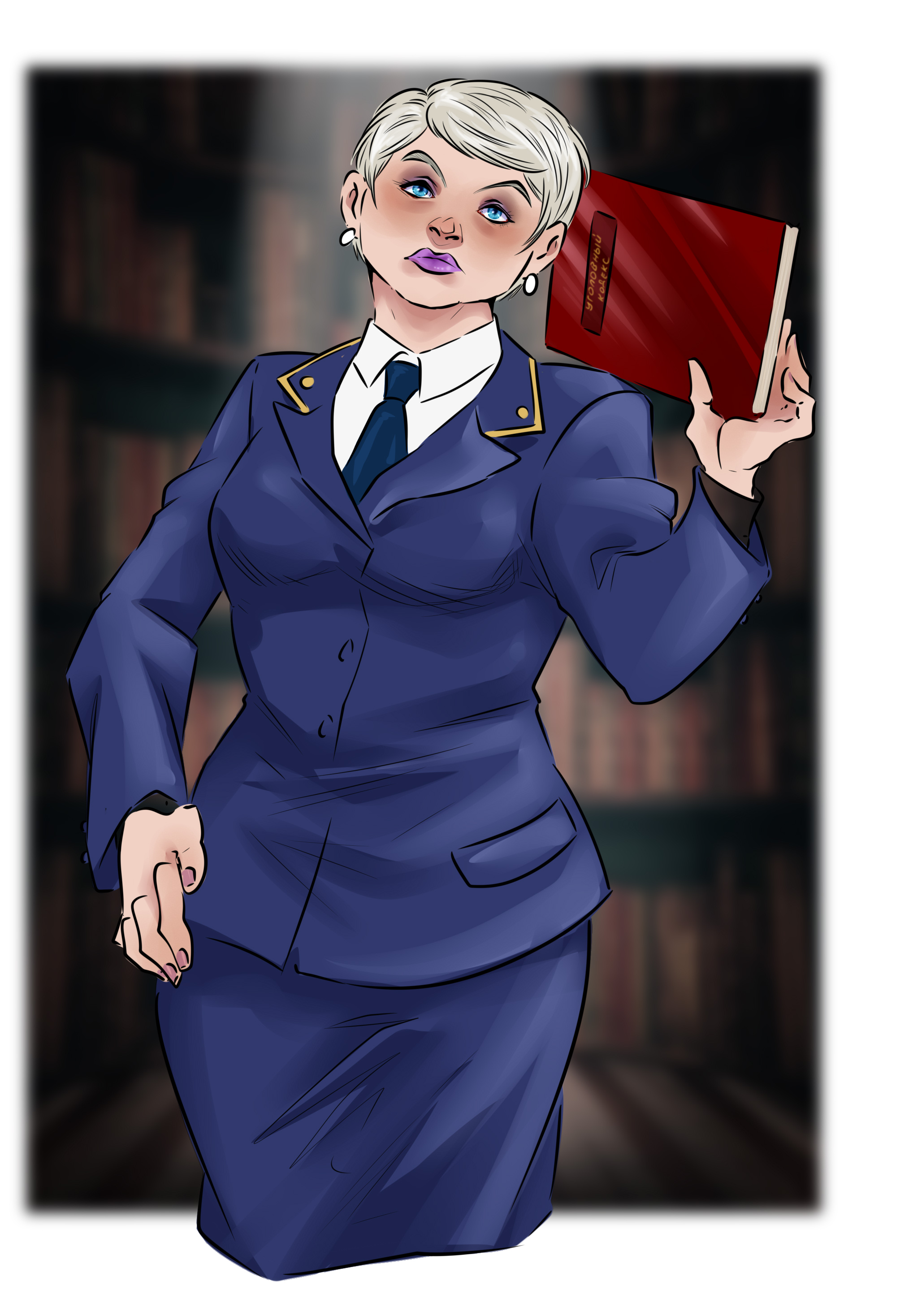 Строгая тётка из прокуратуры, но она говорит что из Сибири. Клиническая «сова». Любит пельмешки.