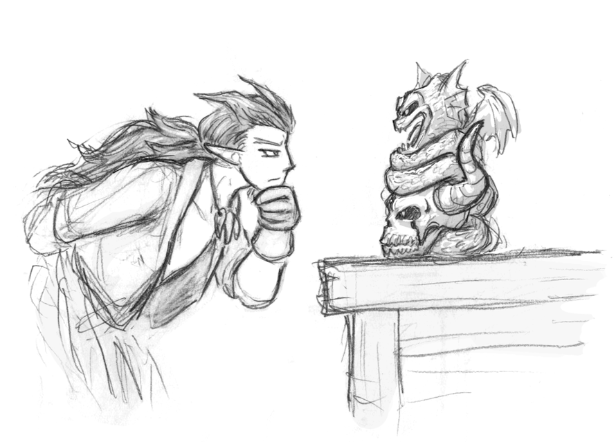 “Malroth,” she finally said. “I realize this is funny for you, but please understand, a while ago I realized that there is a skeleton in my bag, and I don’t remember putting it in there.”