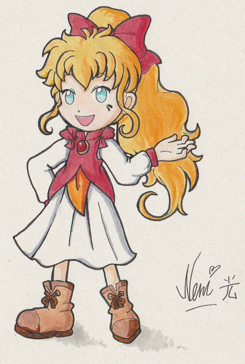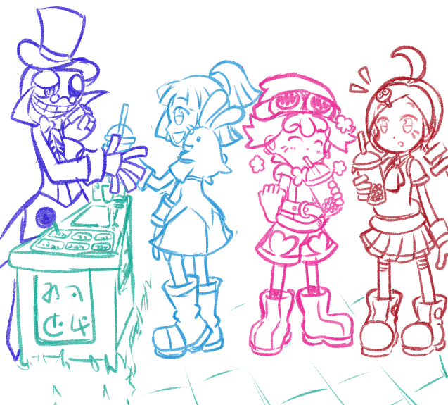 A wave of magic ran across the battlefield, striking almost everyone involved, but especially Rulue and Amitie, who had attempted to form a protective wall in front of Arle-the-actual-one. Their pained yelps prompted Sig to walk up to this very part of the battlefield and offer his hands to the two girls on the floor.