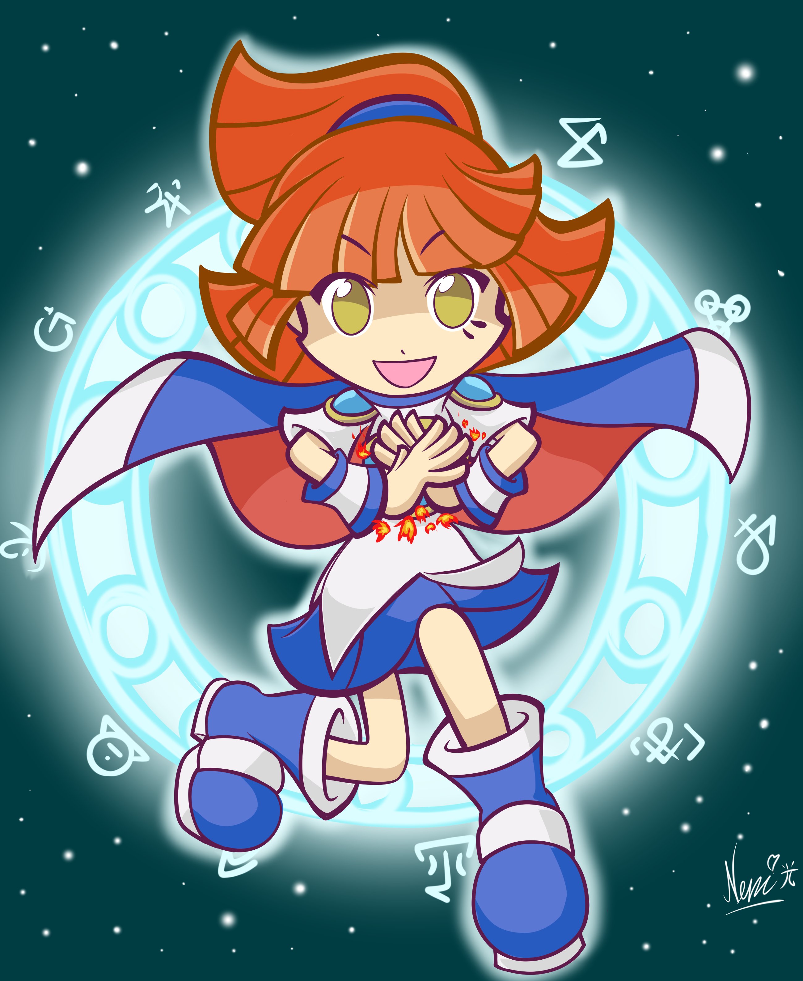 Ah, there it was. The weird Arle-but-not-Arle girl charged her power in a strange jewel she held, matched a few red Puyos and…