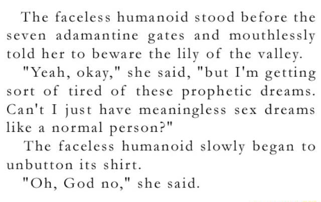 “Denial of the self,” says the faceless humanoid that lives in Junhoe’s dreams, “brings nothing but frustration.”