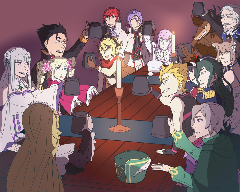 Roswaal:[Why nooot? Sounds like a good idea. After all, there are sooome new members who haven't really recieeeved a proper welcome party, haaaave they?]