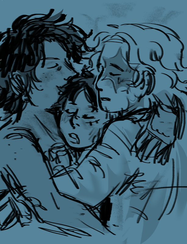 Image of Ace, Luffy, and Sabo cuddling by the wonderful SucreBB6 (@ sucreboy-blog if you want to go check them out on tumblr!) This one is called 'Sleppy' I'm guessing because they are some sleppy boi's.