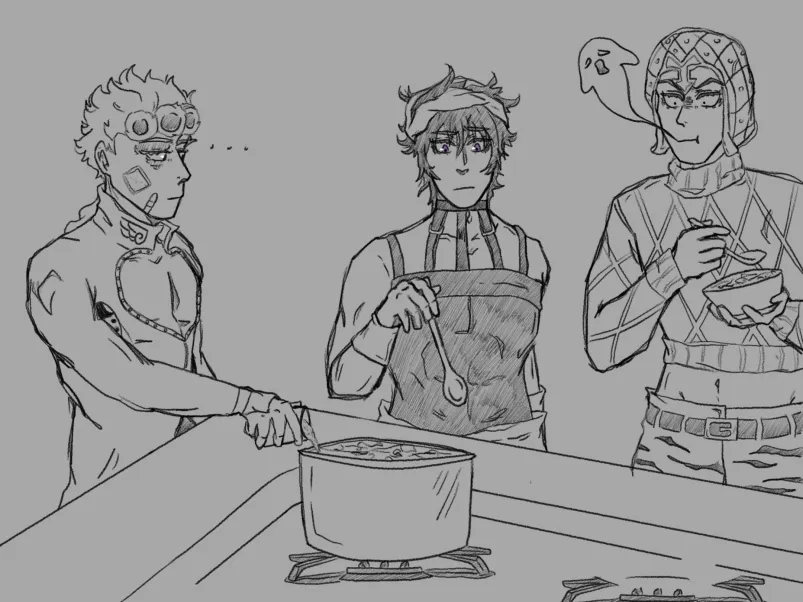 “Not to interrupt this shocking revelation, but,” Fugo trails off, scratching the side of his neck. “Are we going to address the elephant in the room?”