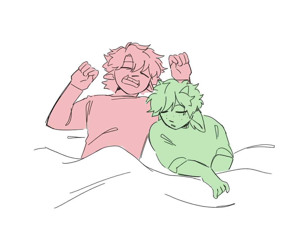 by morning, the two seven year old hybrids are tangled in each other’s arms, and their hair are messy nests of a deserved night's rest. light wind rattles tree branches against the windows.
