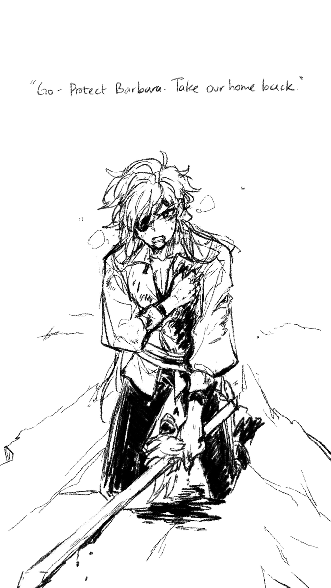 Instead, he gently laid his sister on the blankets and turned to Kaeya, staring him down. With a carefully measured tone, he spoke; “I grieved you, you know.”