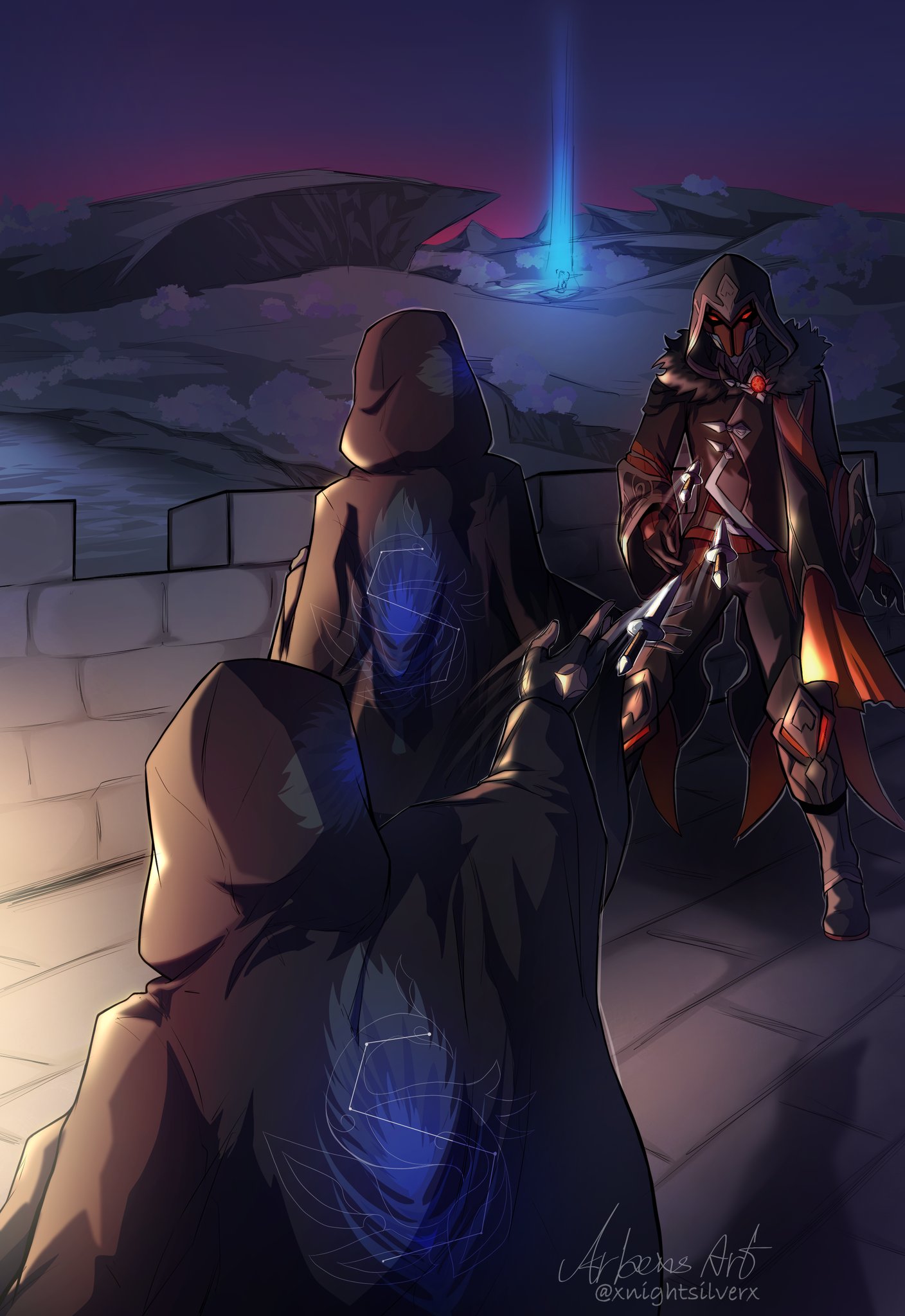 “I thought you were dead. I thought you were gone. Noelle confirmed it, Kaeya, and I had no reason to believe otherwise. No reason to hold onto hope,” Albedo continued. “All I could think about was how, despite considering you a good friend, I could have done better. About how, when you asked me to draw you, all I gave you was that silly doodle. How I would have never gotten the chance to capture you properly down on paper, and how that, because you were gone, you would eventually fade from my memories with nothing to remember you by.”