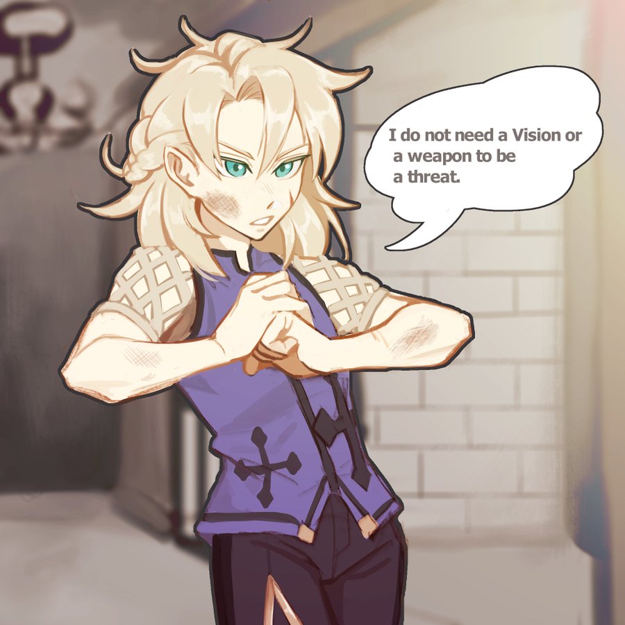“Three, yes, but clearly they needed to try harder to keep me down.” Kaeya confirmed with such candidness that it took the Alchemist a notable amount of self control to keep from snapping at him.