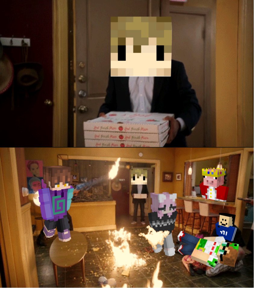 Tommy turned around and saw the hero Philza. He hit a button on his belt making sure that the hero wouldn’t notice. He couldn’t really throw a punch at Philza, so all he could do was try to run. Using his powers was risky especially around a hero so he didn’t want to use them.