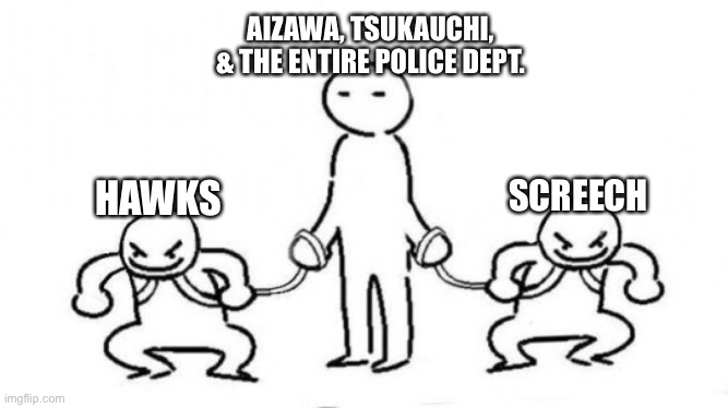 Screech was a vigilante in the area with an Owl quirk. The boy was able to move silently, not even a rustle of the feathers to give away his movements, and Shouta knew he could see perfectly in the dark and could hear him from several rooftops away – as he just proved. Shouta had also seen the kind of damage the boy’s claws – talons? – could do.
