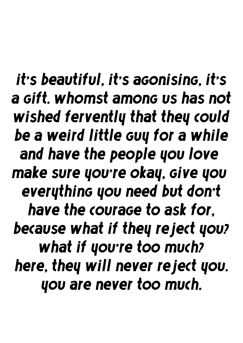 This_world_of_beautiful_monsters, WillowsInTheWind, finiteuniverse, JaredKleinmansHalfEatenBathbomb, do_a_little_bunnyhop, Monssetan, moreschnitzel, Knik, quixoatic, pxrtypoisxn, rtub, danisanerd, RosaAitch, rose_june, TicTacSnacAttac, Ohlookaname_5, X3_N, Ok_but_first_coffee, anon_mous, sammysonov, thecloudenthusiast, dragonfeathers777, Somedudewithasword, Soulian500, CamilleMadeAnAccount, nothingweird, Broetchen_for_fun, AsleepSpoon, 1997ferrari355f1spider, ilovemycathesfluffy, hexburn, rabbiteatswolf, waddlestowaddles, 417marksman, wanderingPillbug, GAL1AM1A, rj_likes_jams, clyclone, keyshui, Ampersand_Martin, Galloper, Aceswild888, littlebabysaucepat, ACardboardBox, casual_goalie, himbosparkles, CitrineDaydream, cumberdoctor, Suck_my_fcking_balls, citricism, and 78 more users as well as 19 guests left kudos on this work!