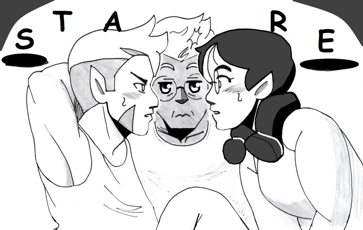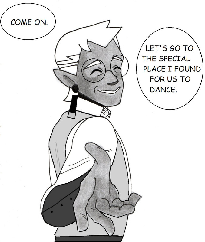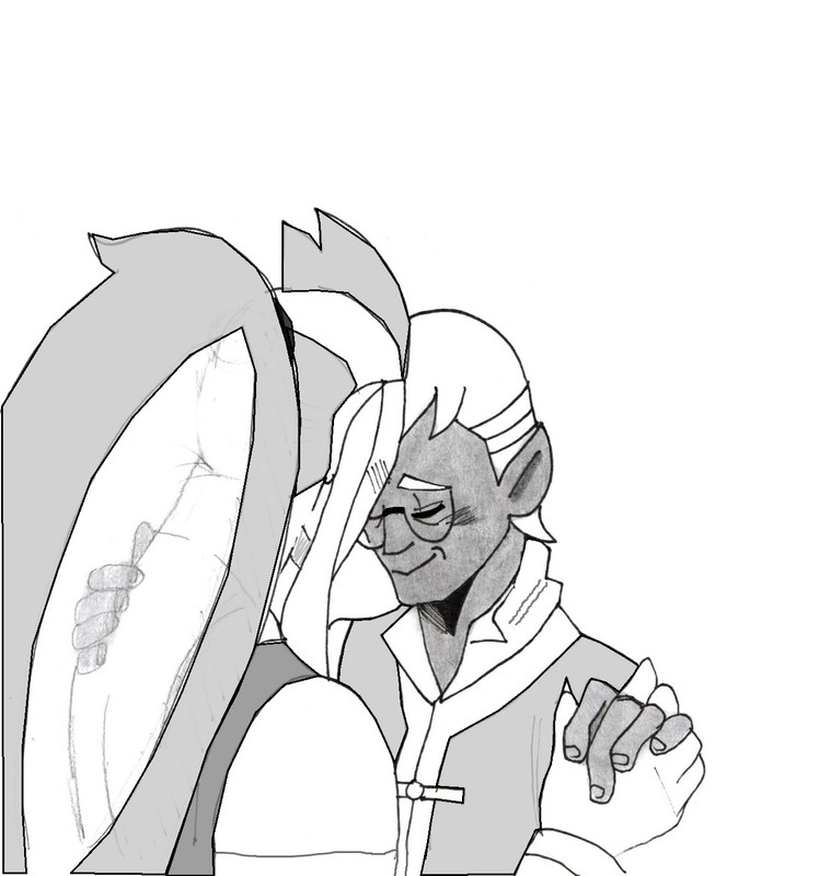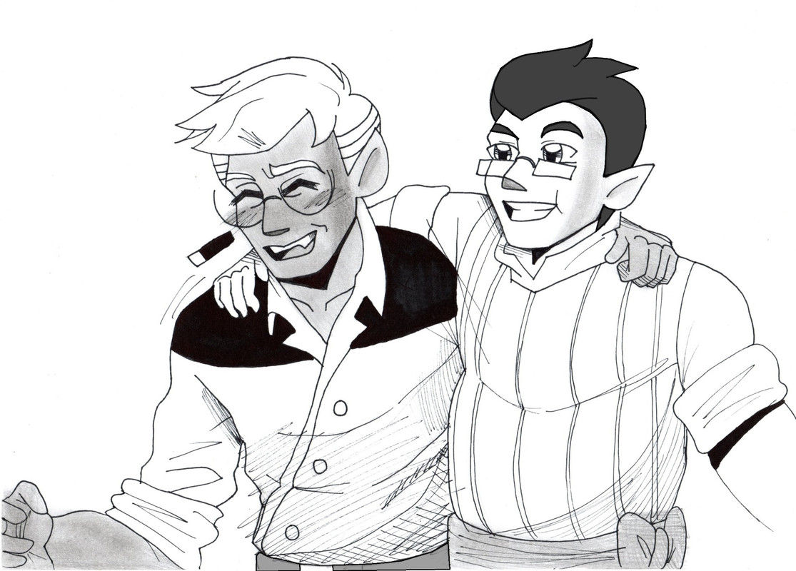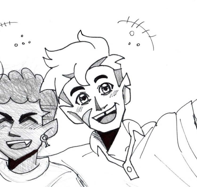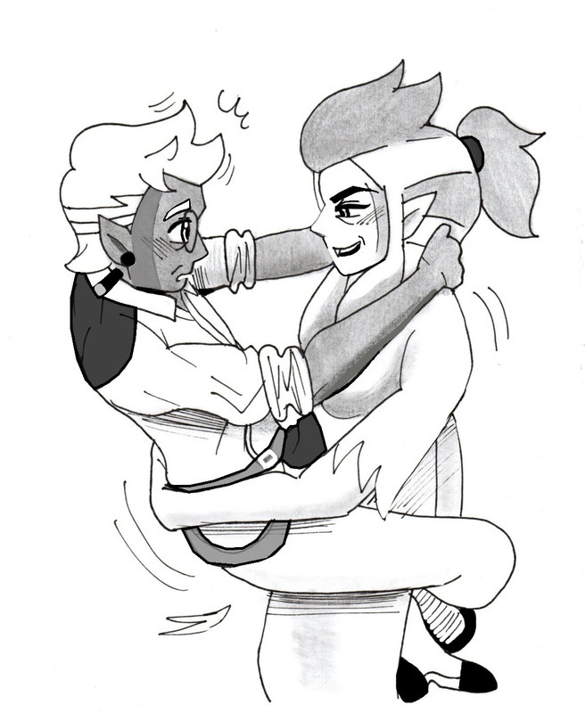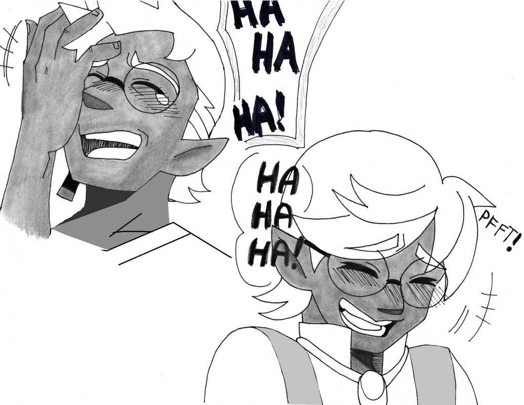 Raine blushes slightly when Eda leans over their back and hugs them from behind, “You took off your vest?” Eda asks, unsure what to say.