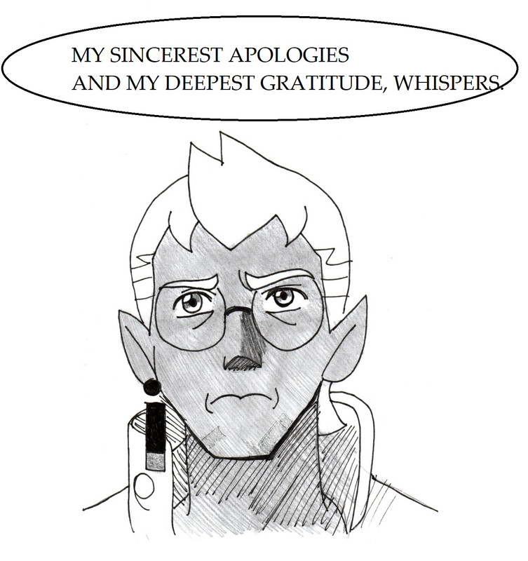 “Great. I’ll notify the shopkeeps soon of the son of Whisper’s little journey around town.”
