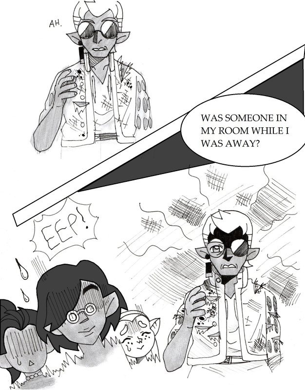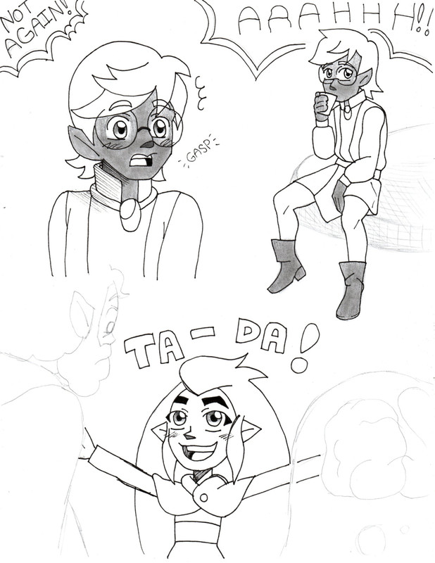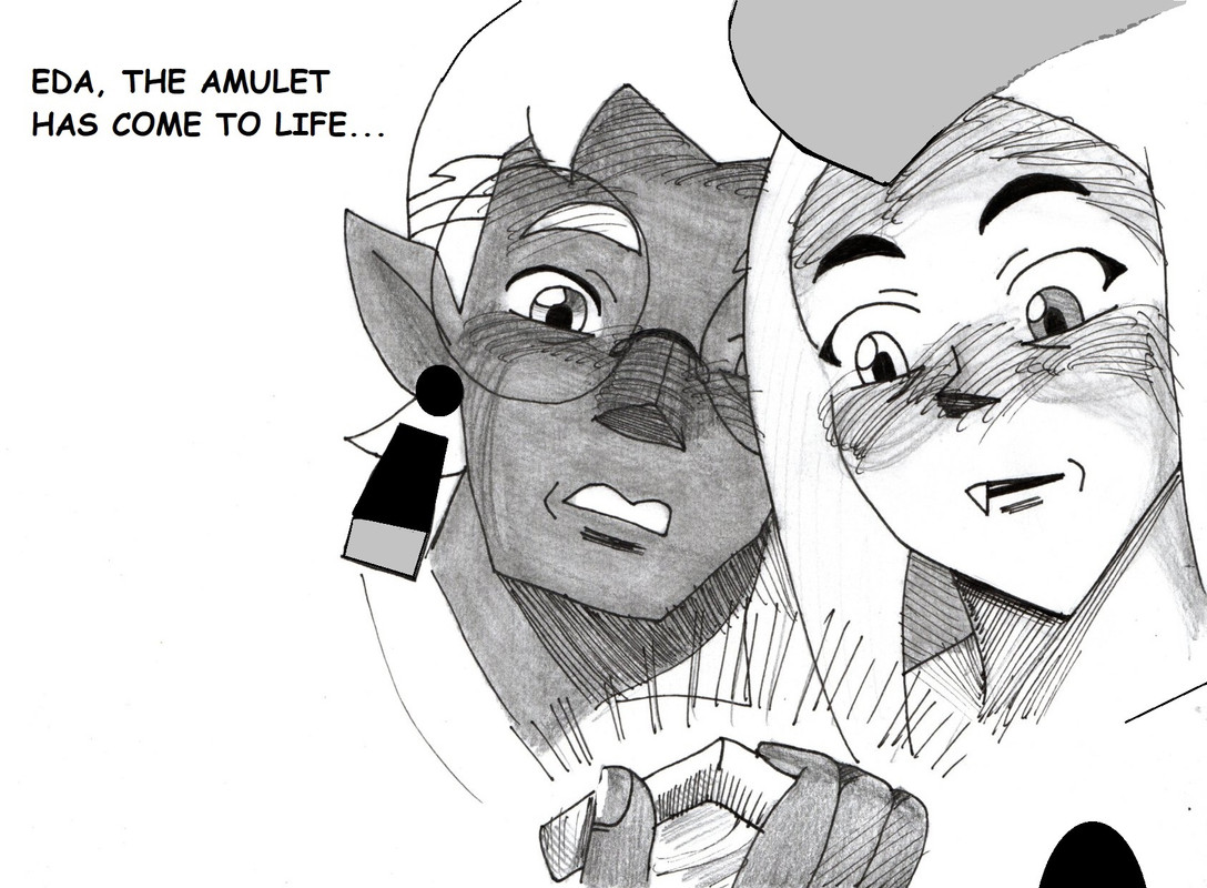 Eda enters from the other side of the tent with food for Raine and herself. "Hey, kid! If I had known you were stopping by, I would've picked up some grub for you too," Eda says as she holds out a bowl full of actual grubs much to Luz's disgust. "No worries, Eda. Thanks," she says as she swallows a warm glob of saliva, "We stopped by to bring you the change of clothes you ordered."