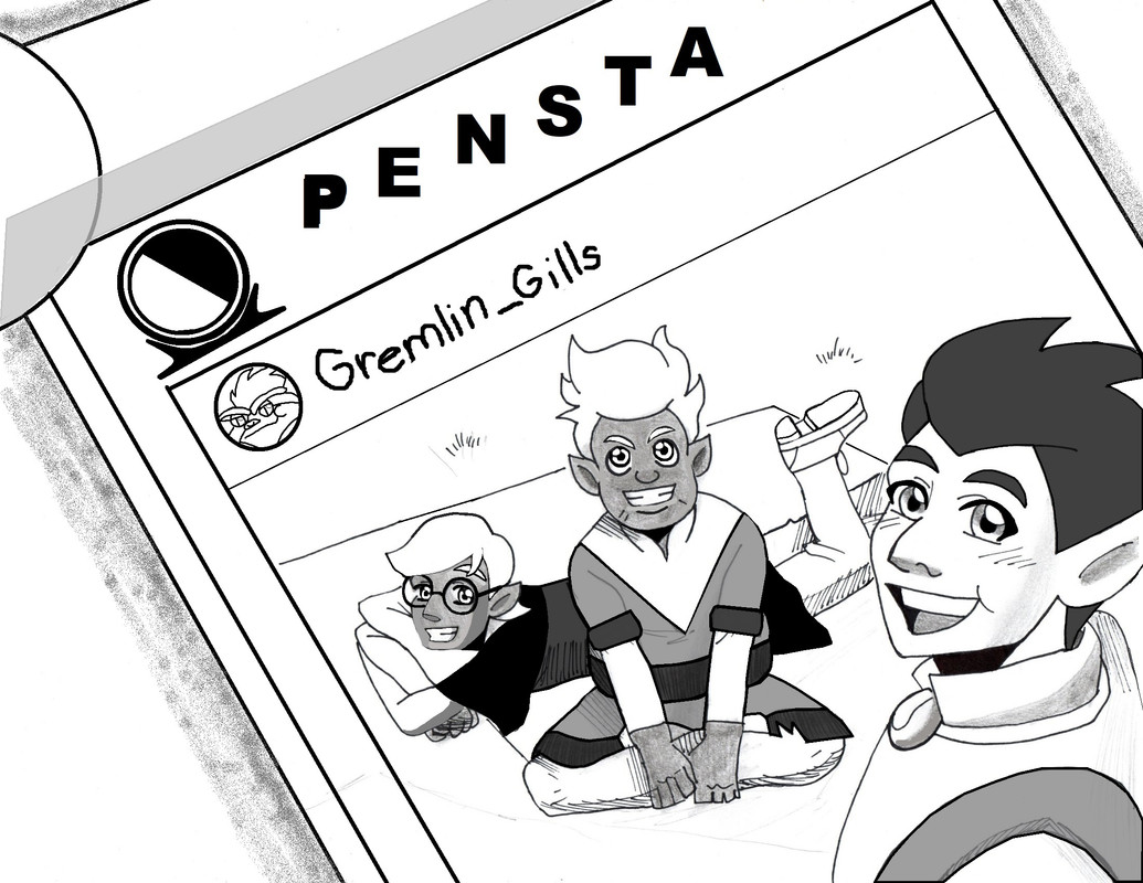 Raine is surprised at Hunter's development in their absence, "He has a penstagram now?"