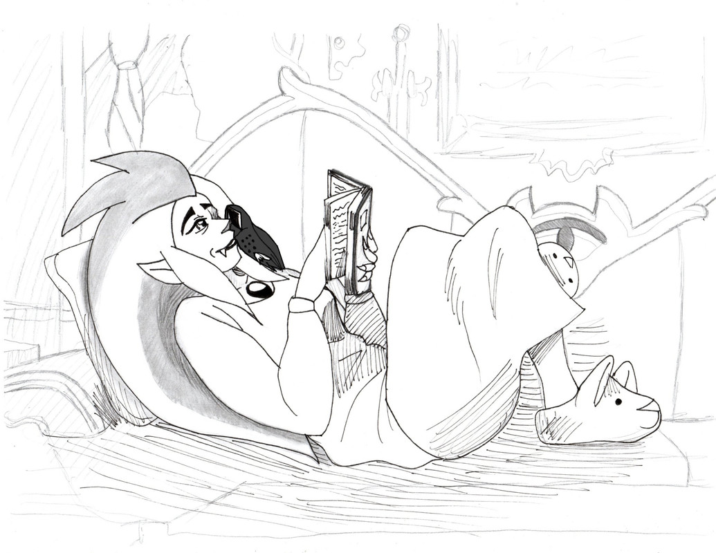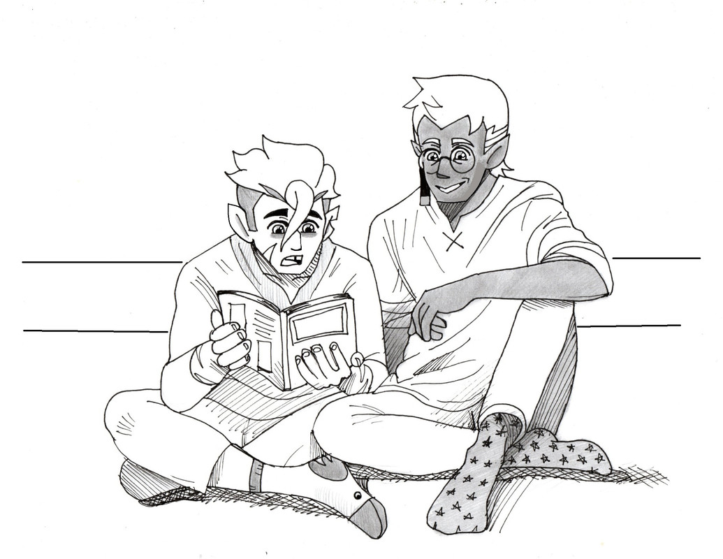 Raine smiles cheekily, “Help from a certain librarian? Hmmm?” Raine teases. Darius covers his face with his hand before looking back at Raine, “Would you like to borrow them or not?”
