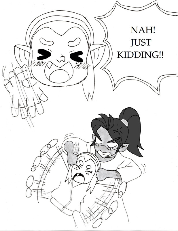 "Yup! I mean, he did capture us after the game..." Willow says as she brings her finger to her mouth in thought.