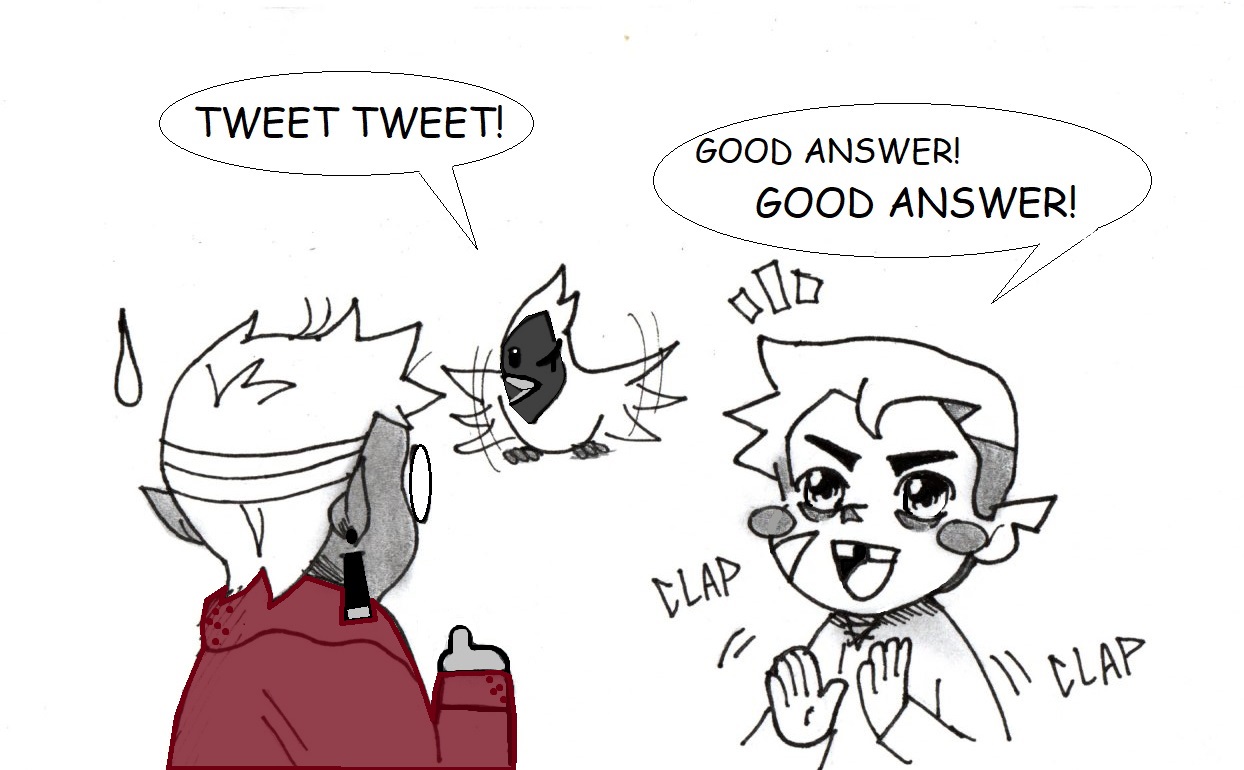 "Heh heh, you're famous on penstagram, Flapjack." The cardinal confirms this with a proud "Chirp!"